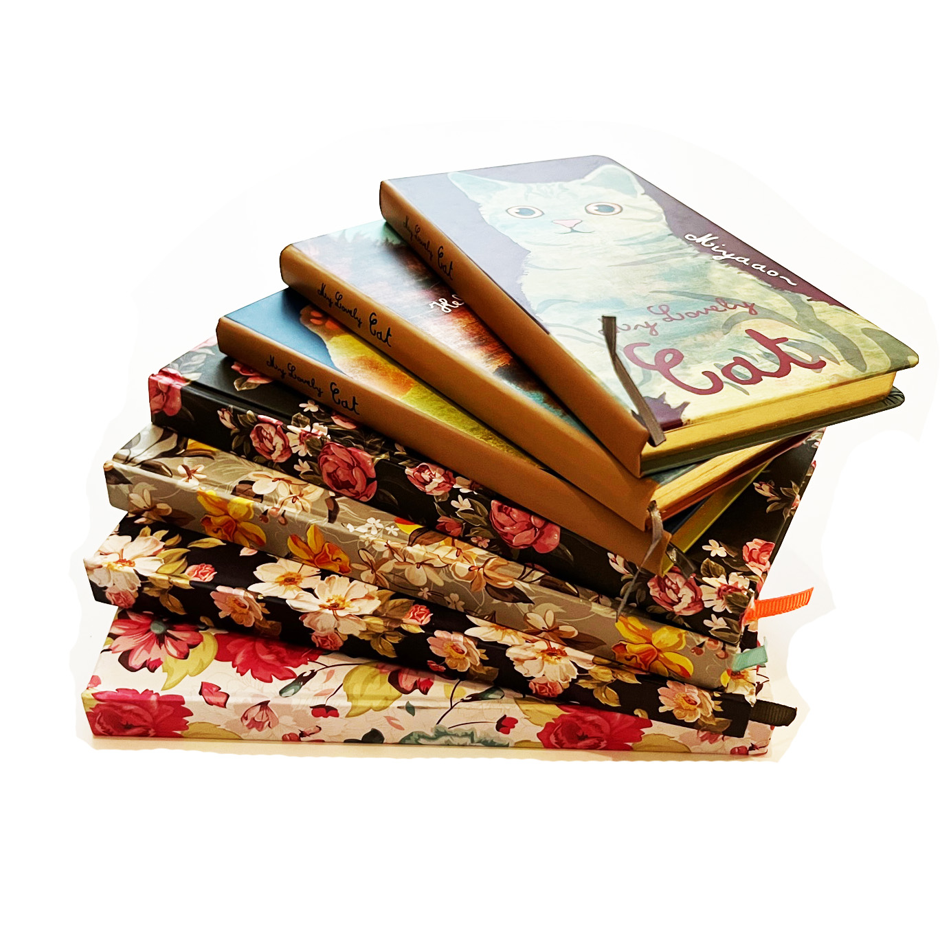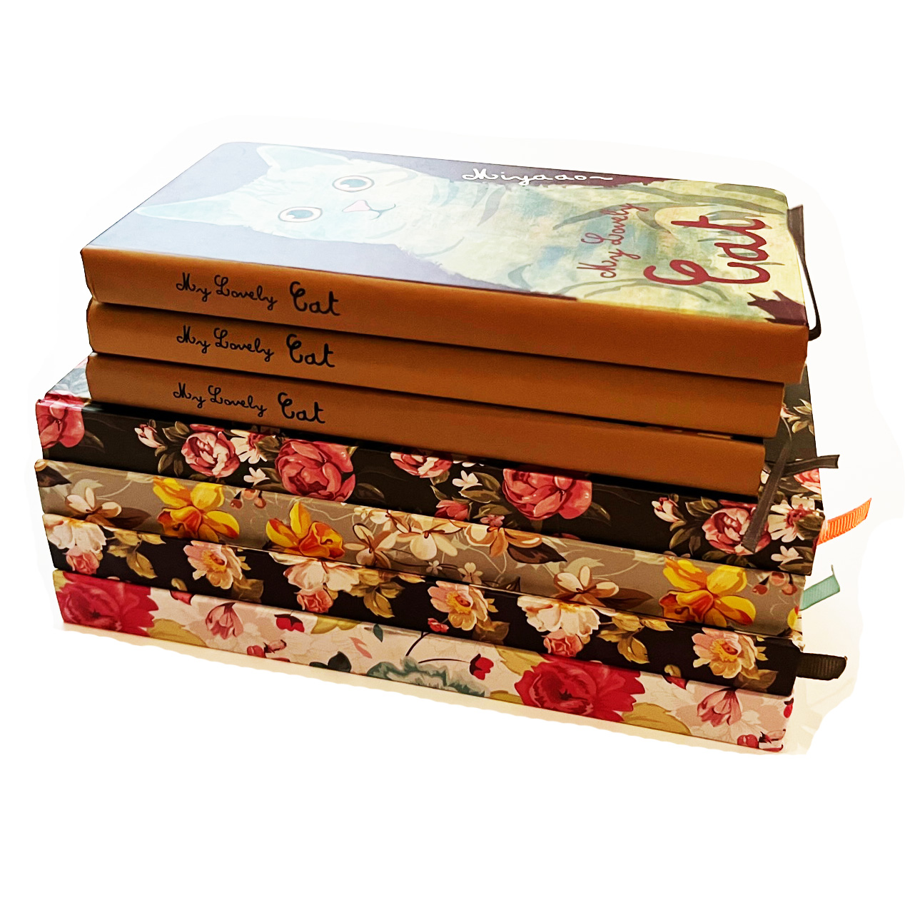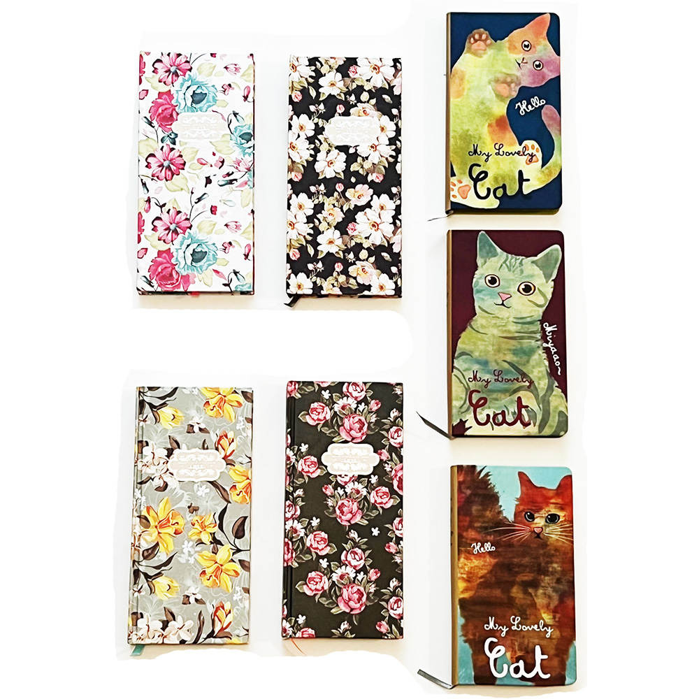 Details:Flowers Cats Cover A5 Size 120 Sheets Hardback Notebook With Ribbon Bookmark