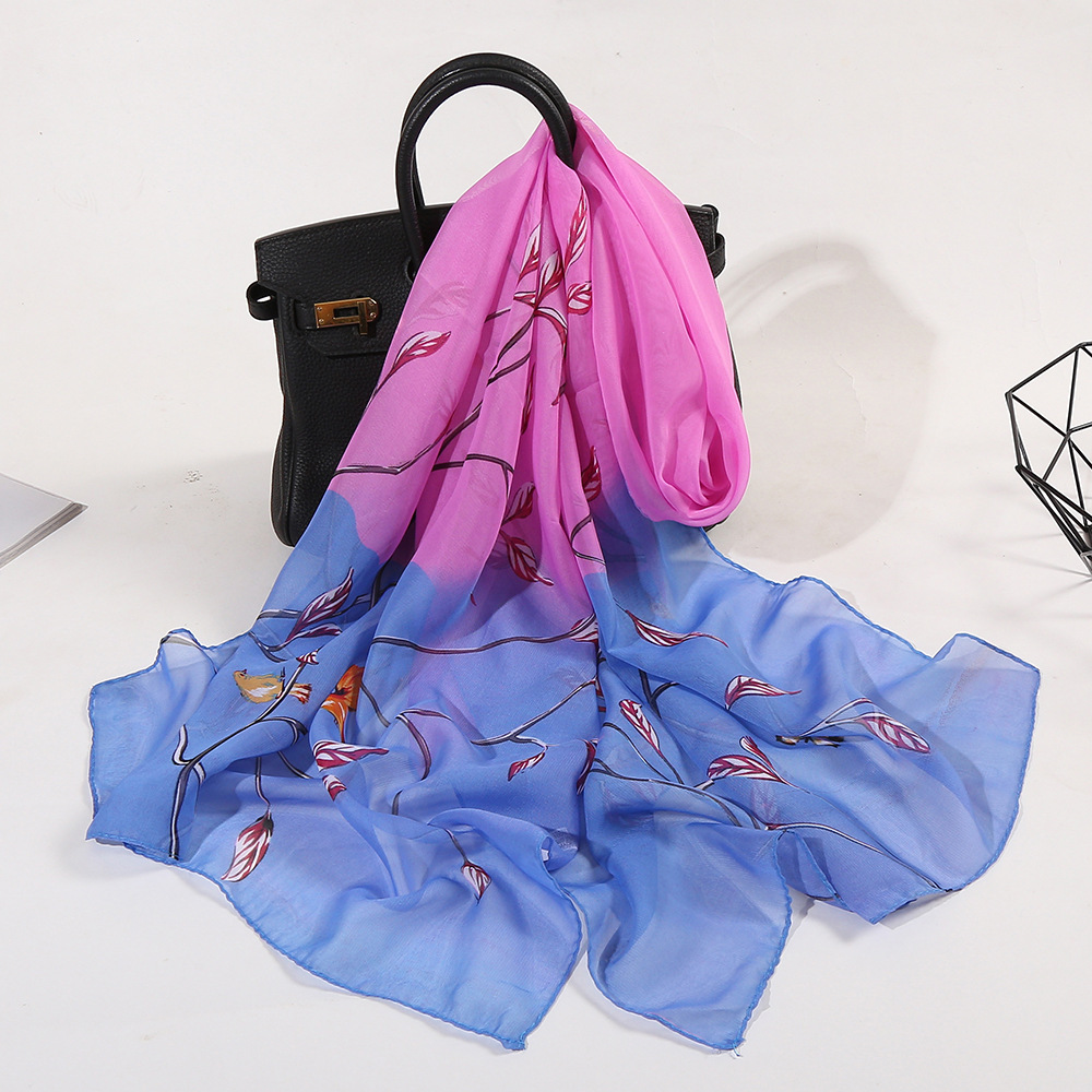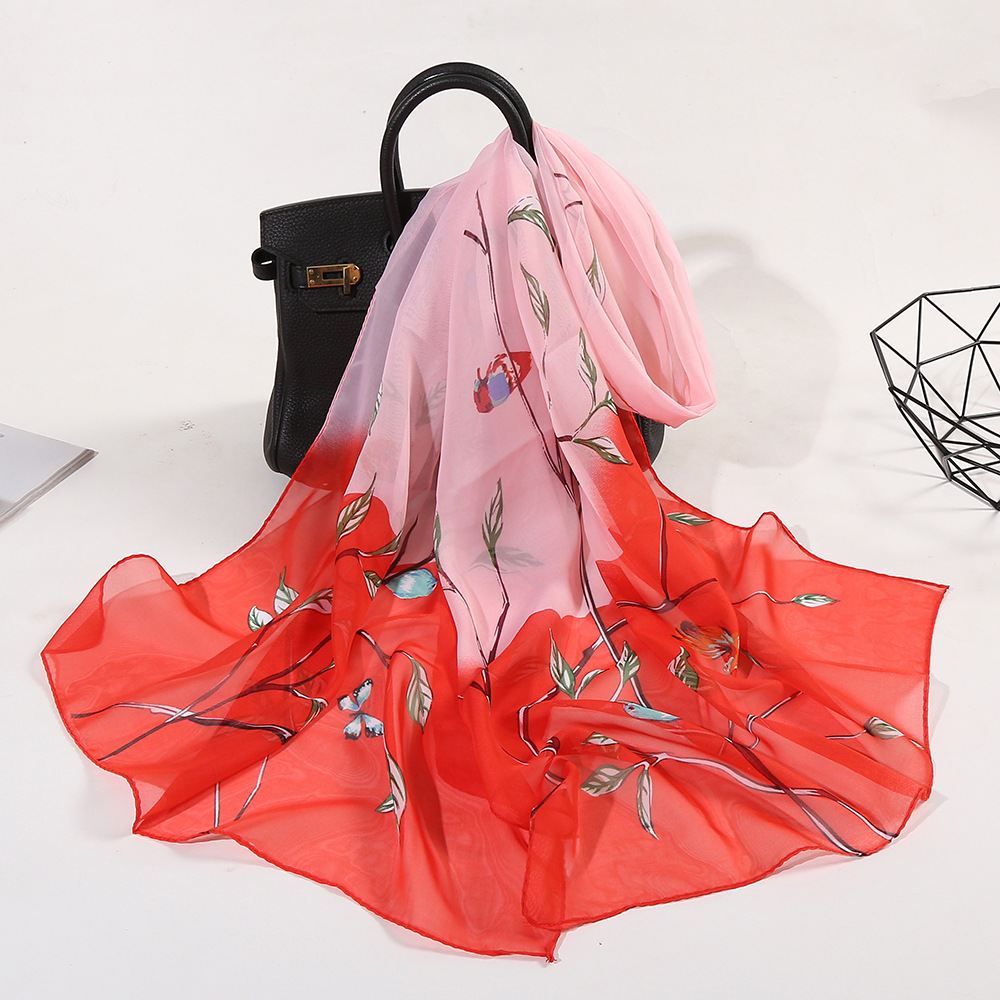 Garden Birds Butterflies Tree Flowers Fashion Ladies Chiffon Scarf Womens Shawls