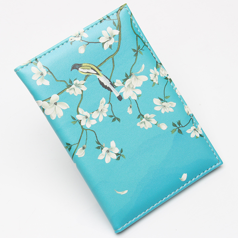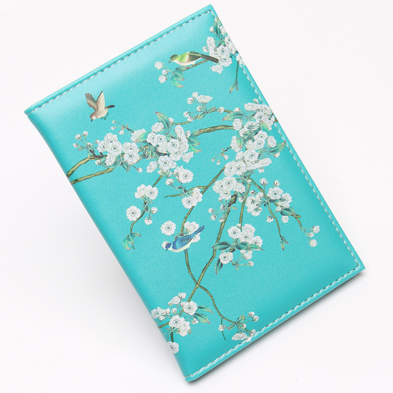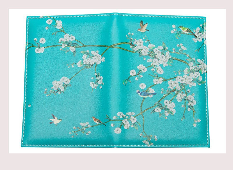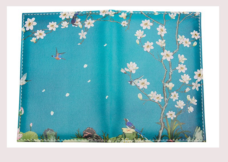 Garden Birds Cherry Blossom Flowers Cute Floral Passport Cover Card Ticket Pouch