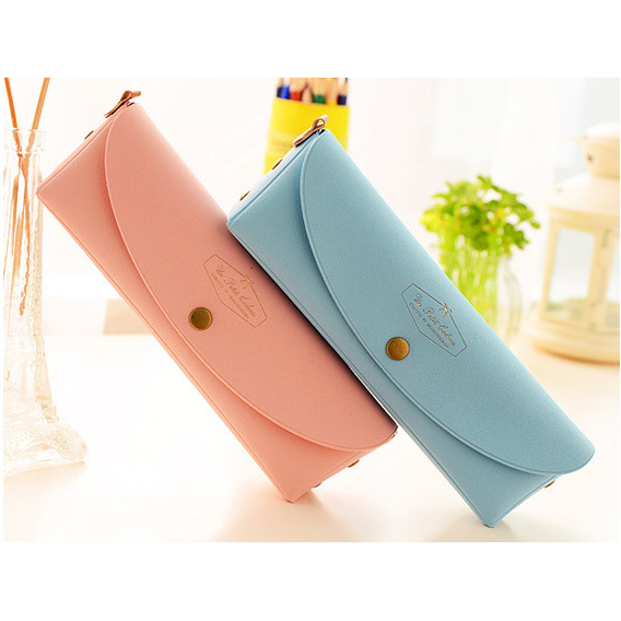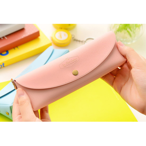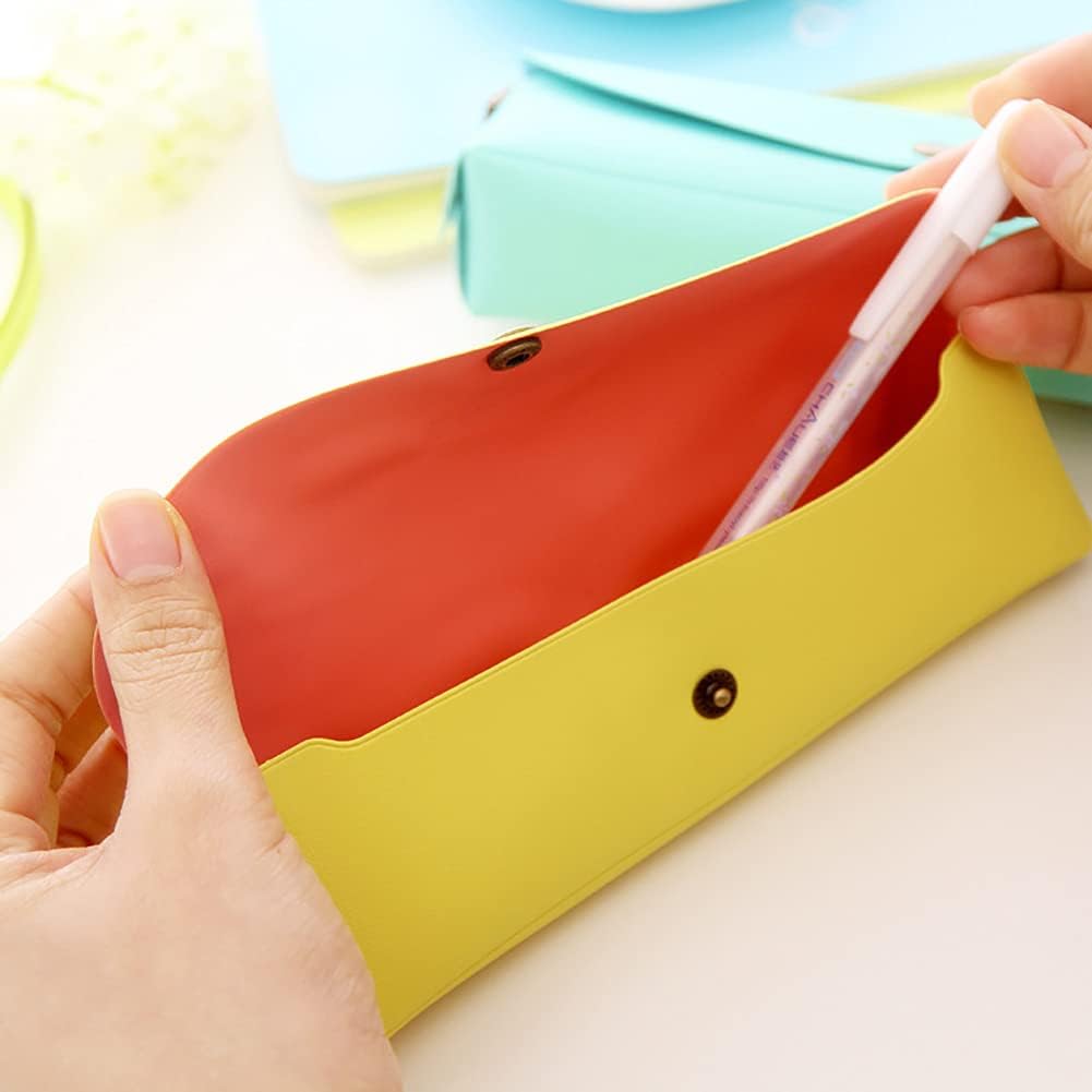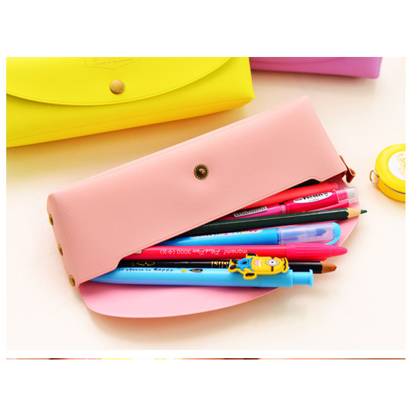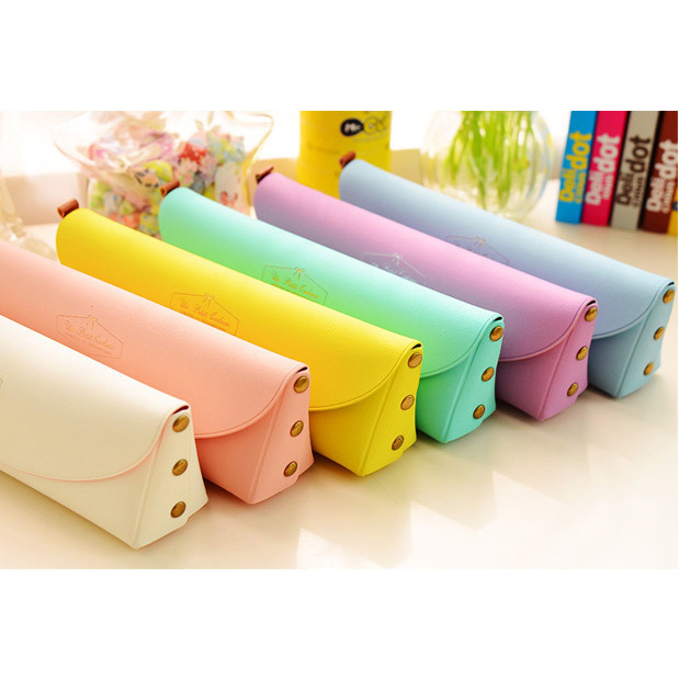 Girls Candy Macaron Colour Soft Faux Leather Pencil Case Cosmetic Makeup Bag