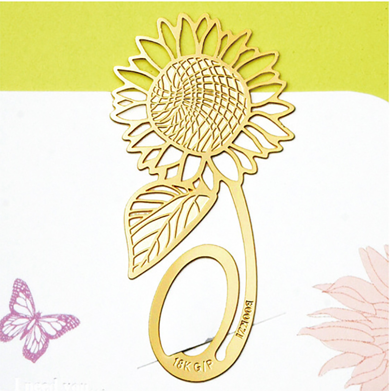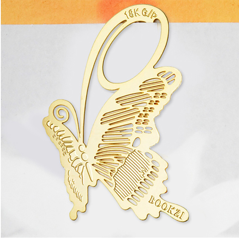 Very cute gold colour metal bookmarks in novelty designs of butterfly, rose, sunflower, grapes, leaves, bird feather, animals, and many more.