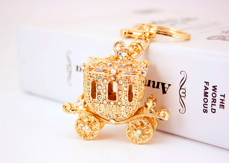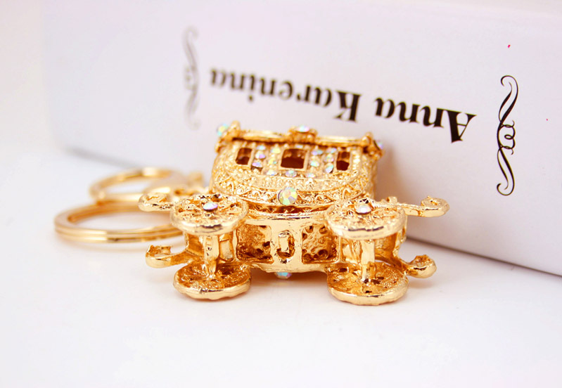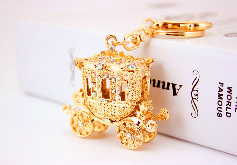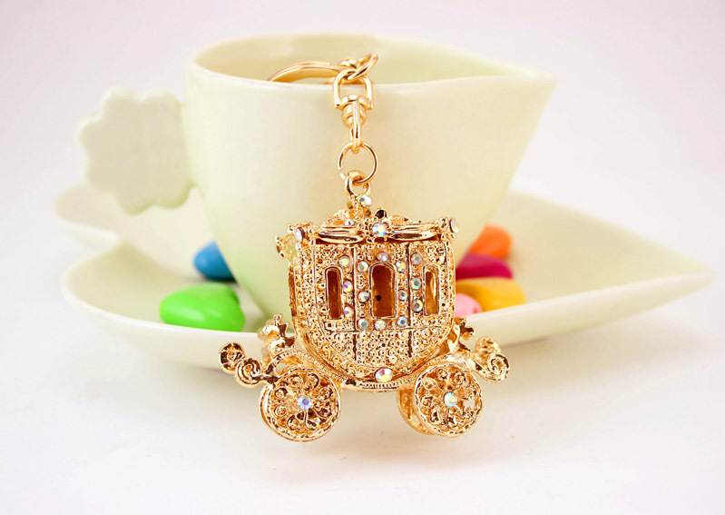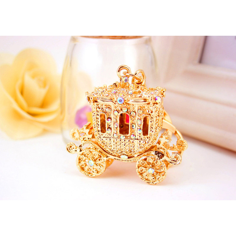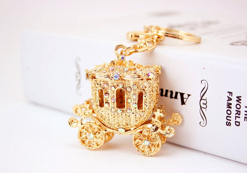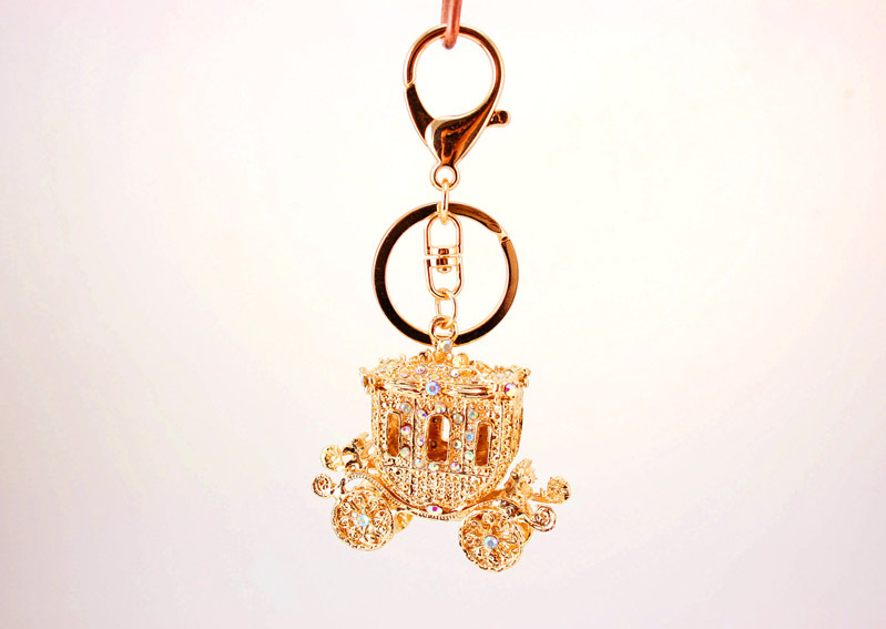 Gold Royal Carriage Crystal Diamante Rhinestone Bag Charms Handbag Keyrings Pendant Key Chain