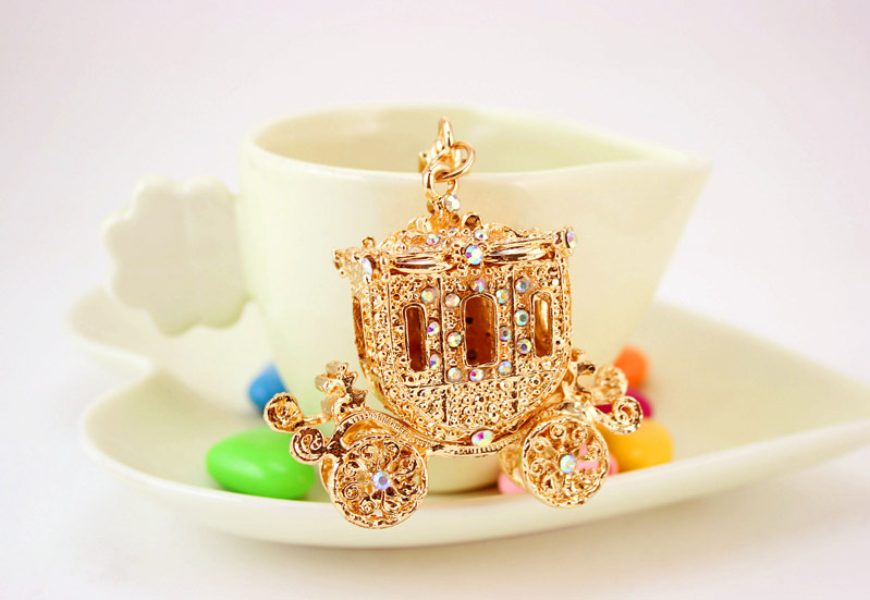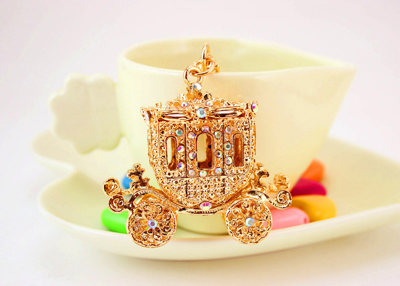 Diamante Gold Carriage Keyring Handbag Charm