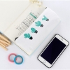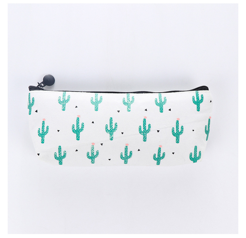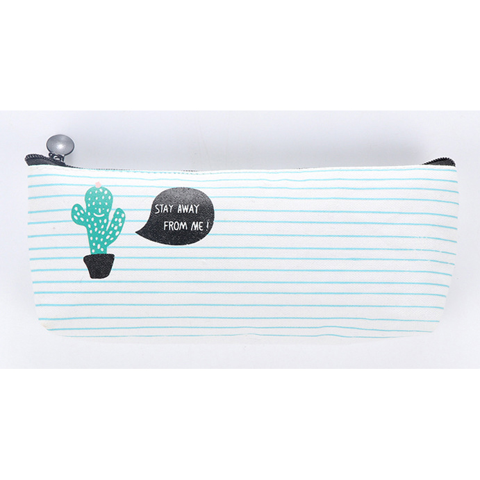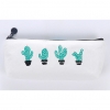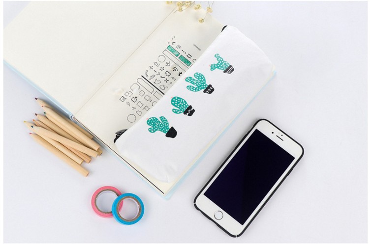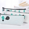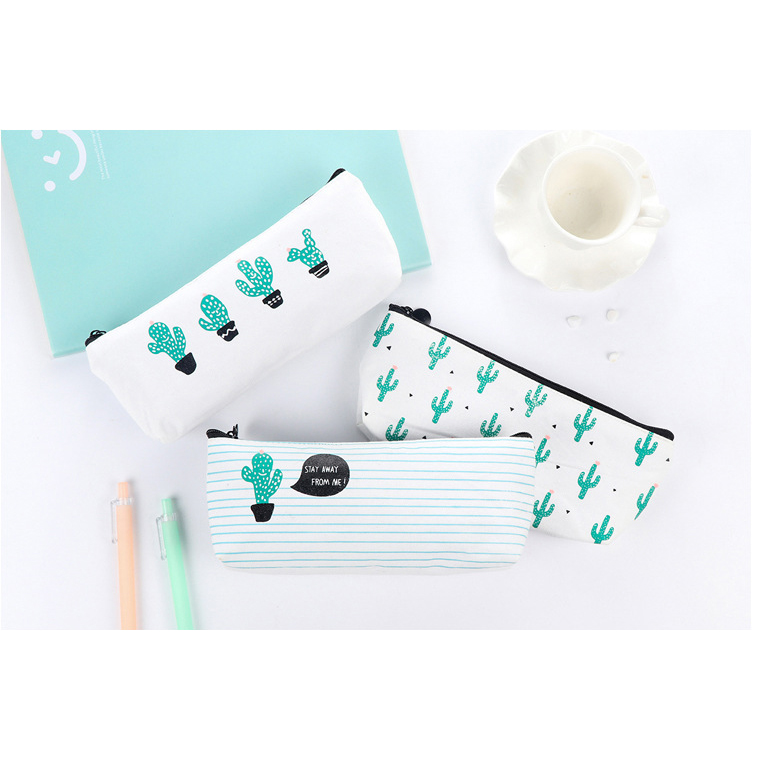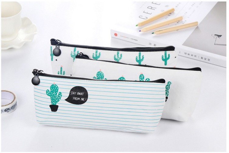 Green Cactus Plants White Canvas Pencil Cases Cute Make Up Bags Pen Pouches