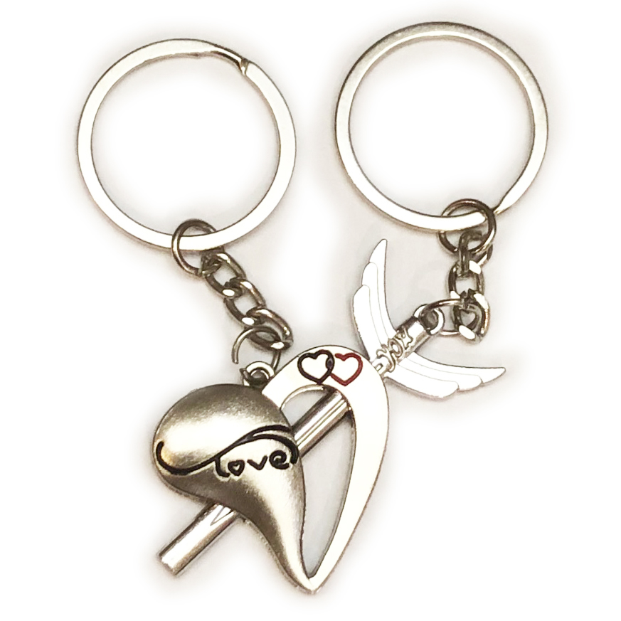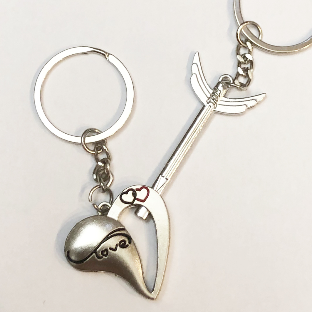 Heart Cupid Arrow Couple Keyrings Lovers Puzzle Keyring Set Silver Key Chains