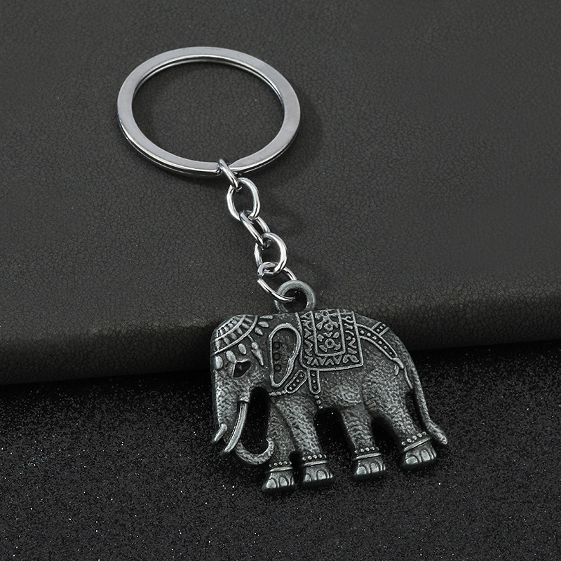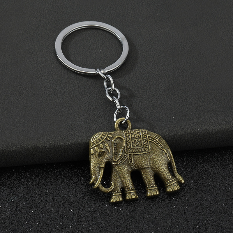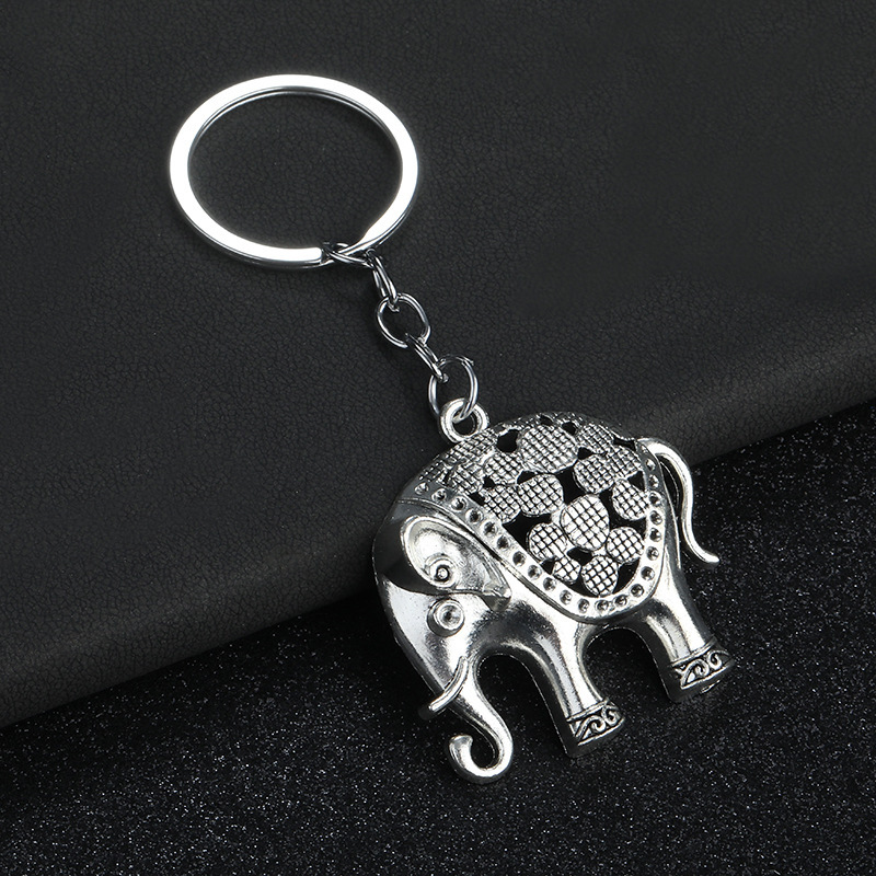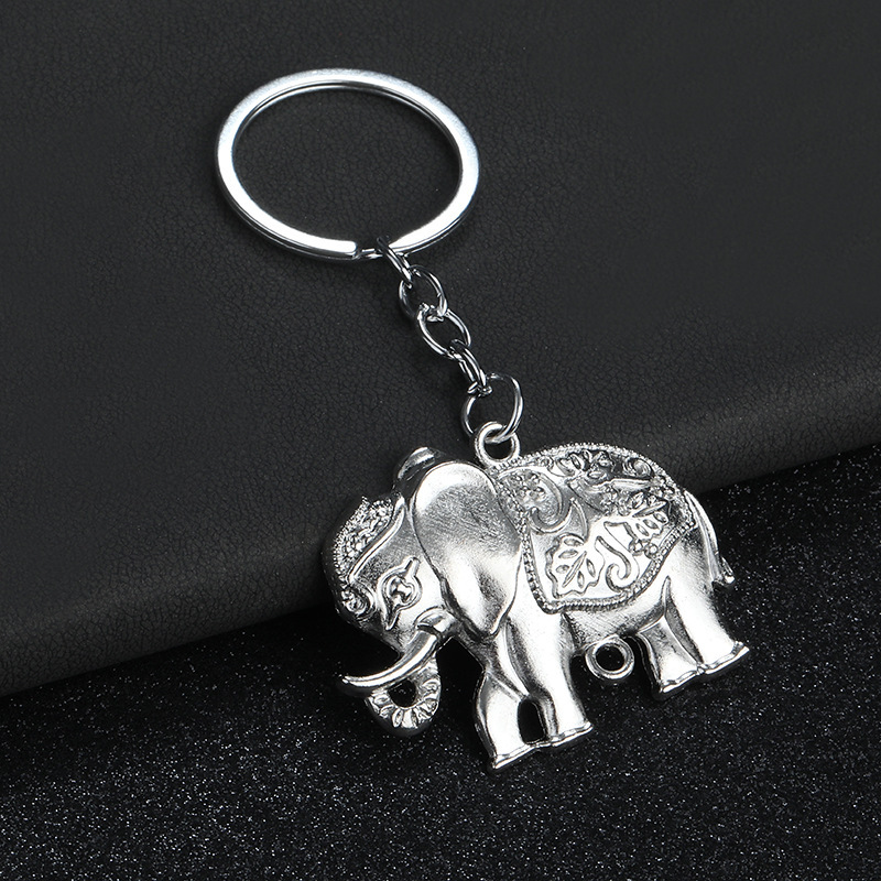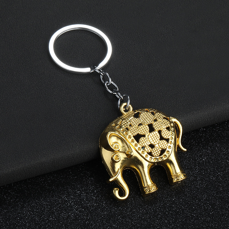 Indian Style Gold Silver Elephant 3D Animals Keyrings Novelty Metal Key Rings