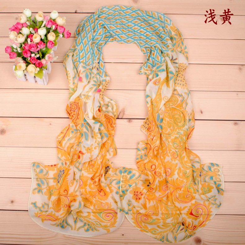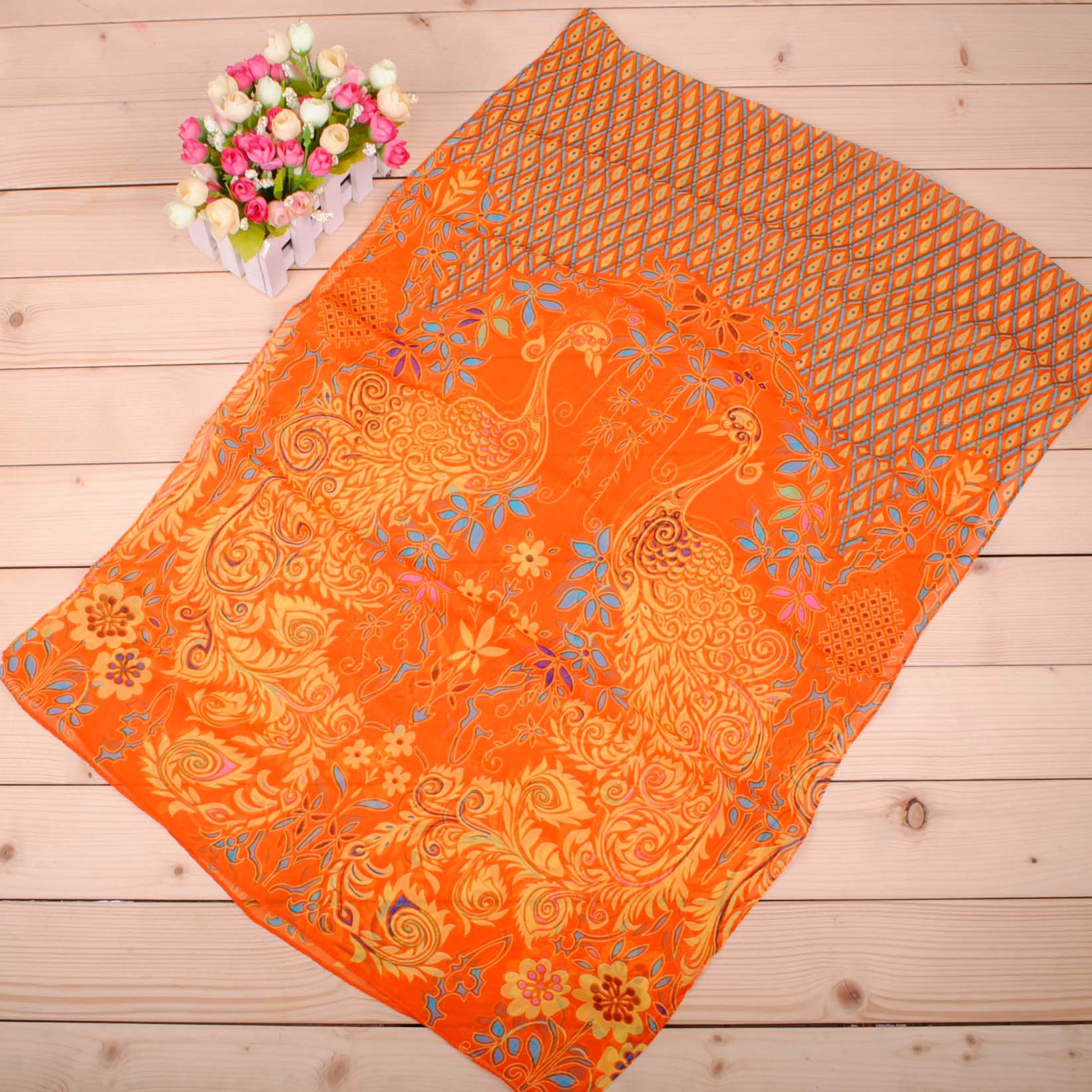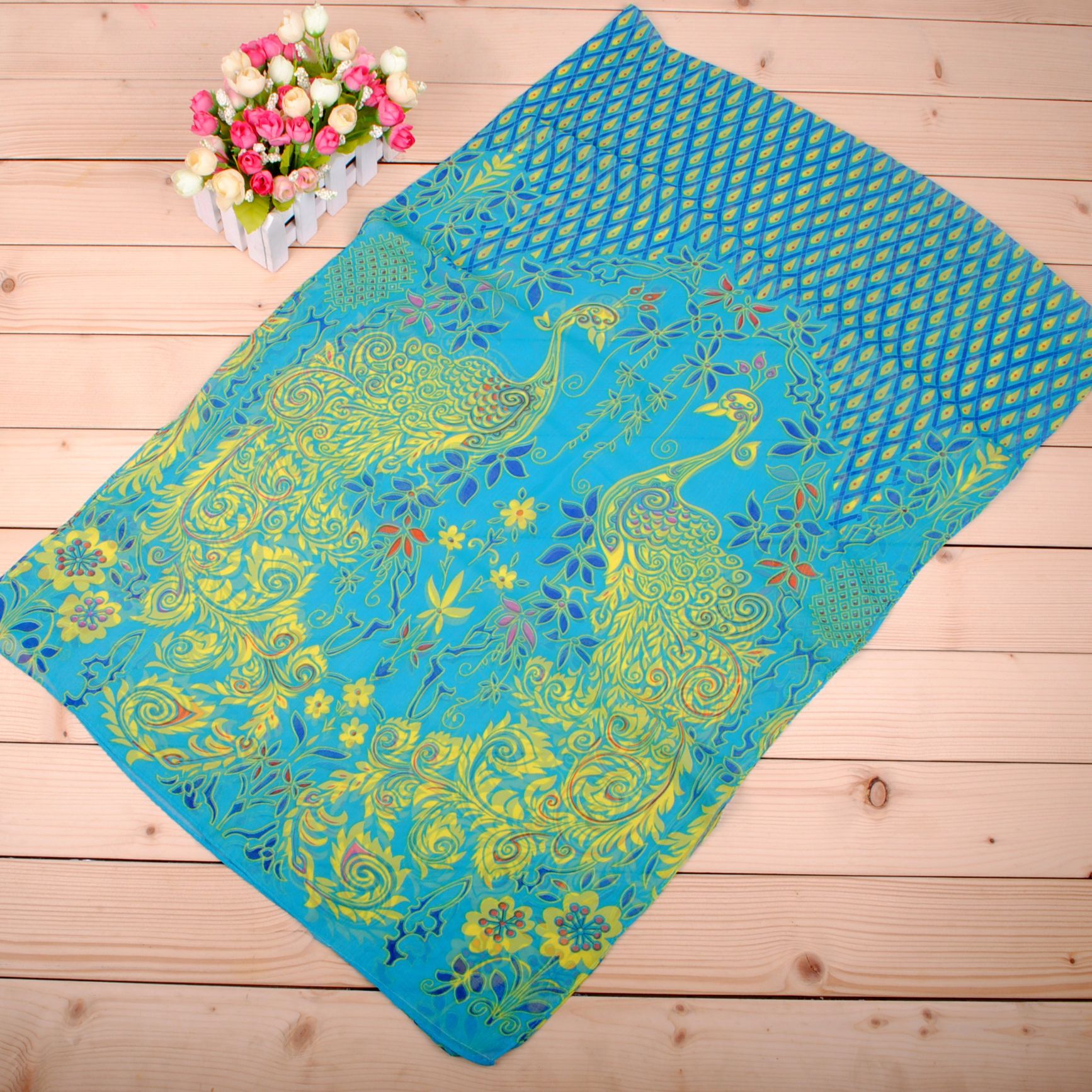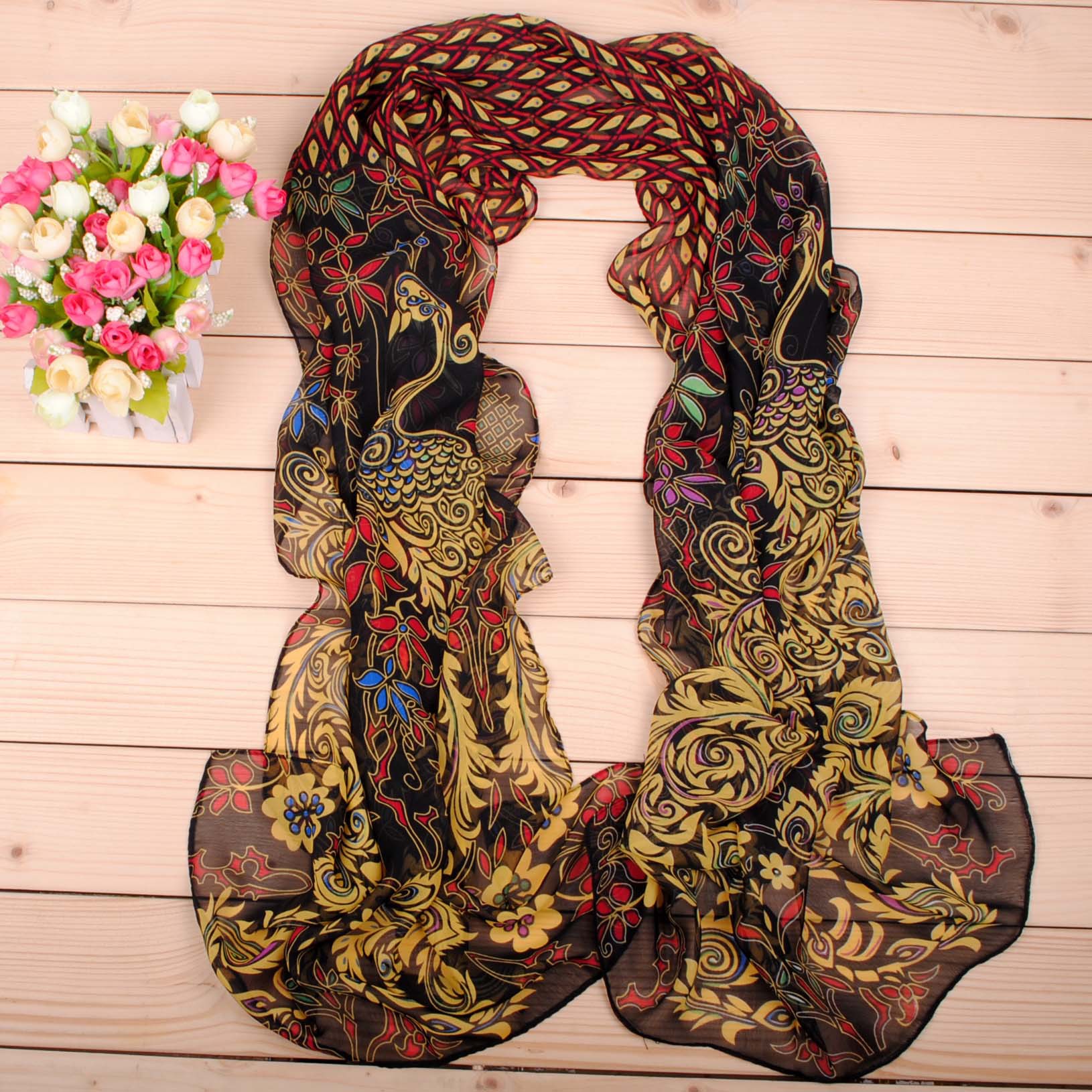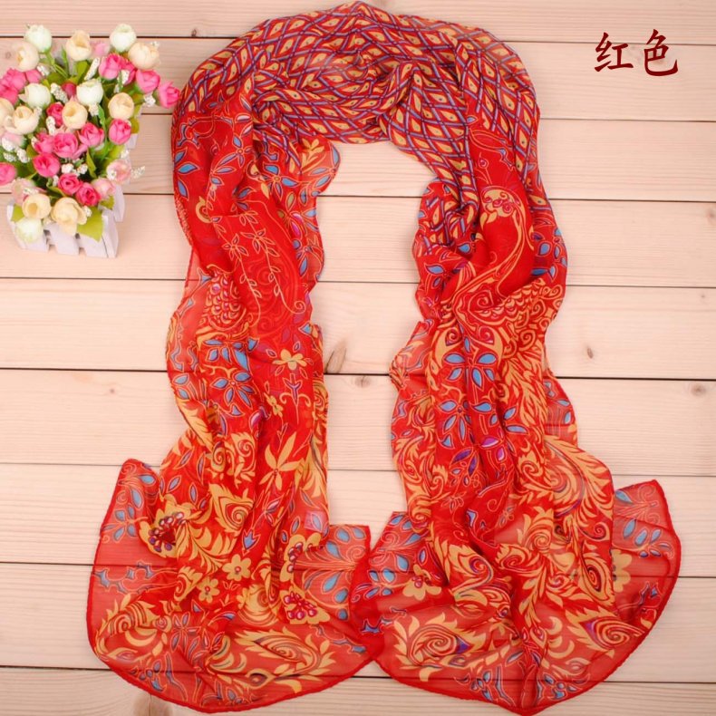 Indian Style Peacock Flowers Fashion Ladies Scarves Chiffon Scarf Womens Shawls