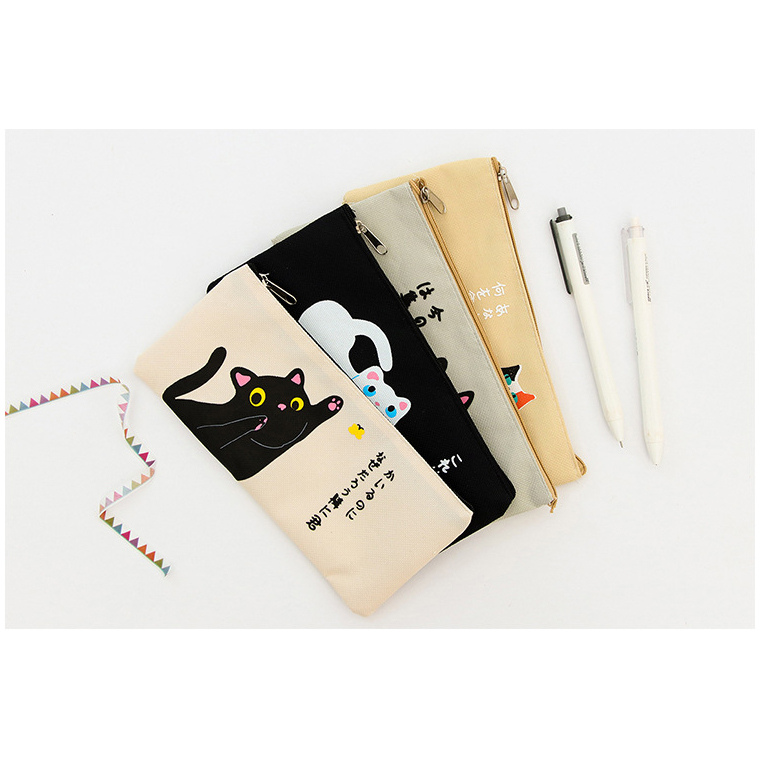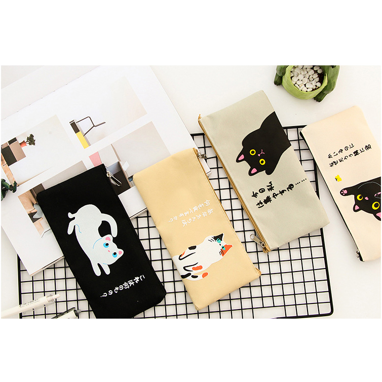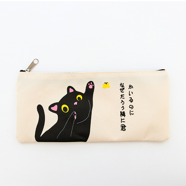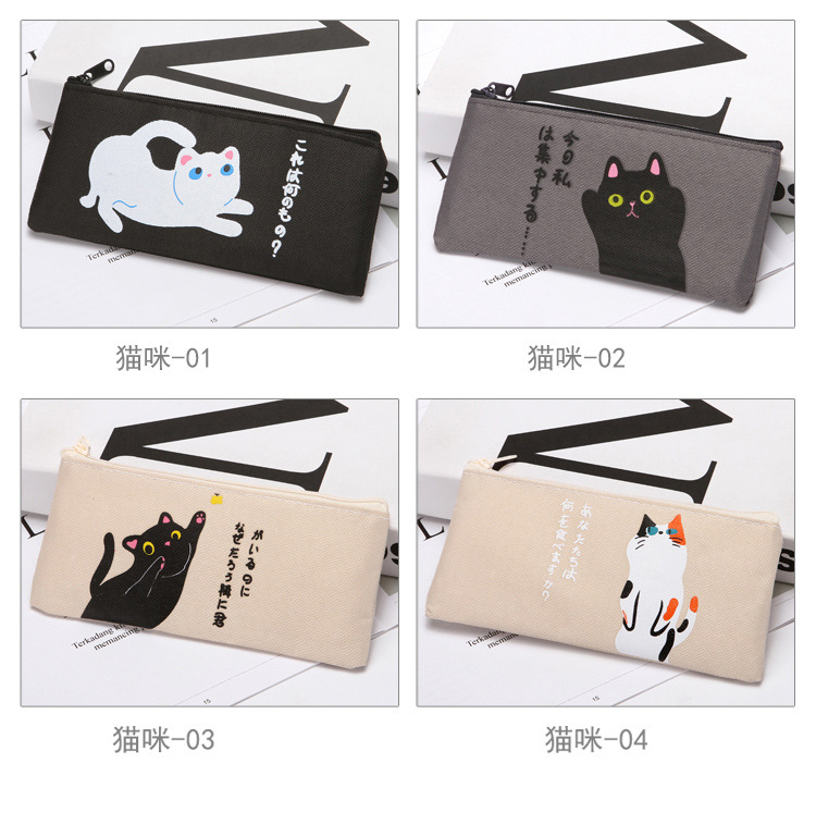 Japanese Kitten Cats Cute Canvas Pencil Cases Cosmetics Make Up Bags Pen Pouches