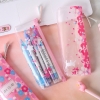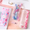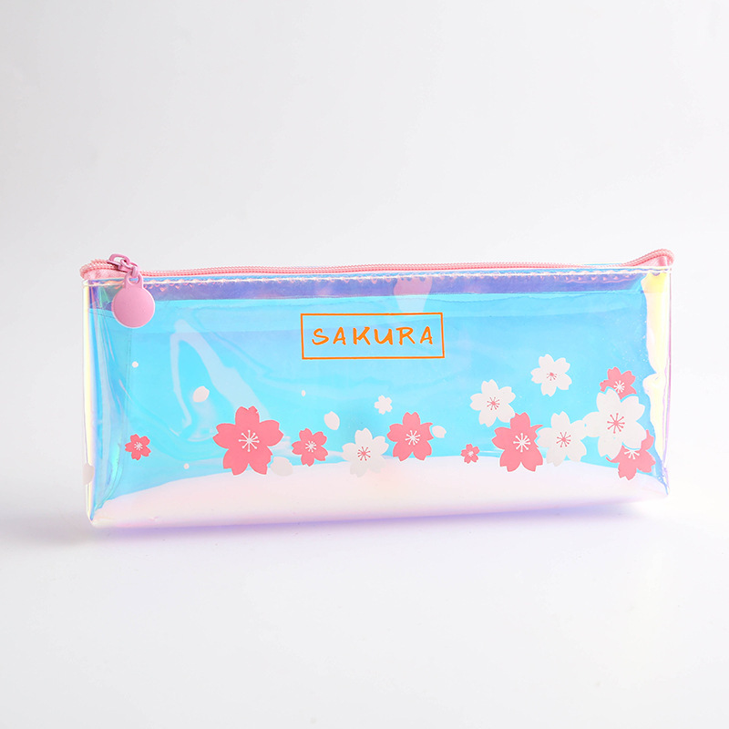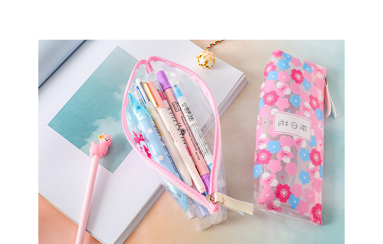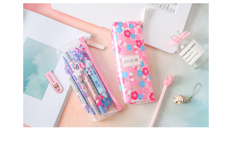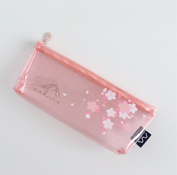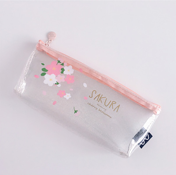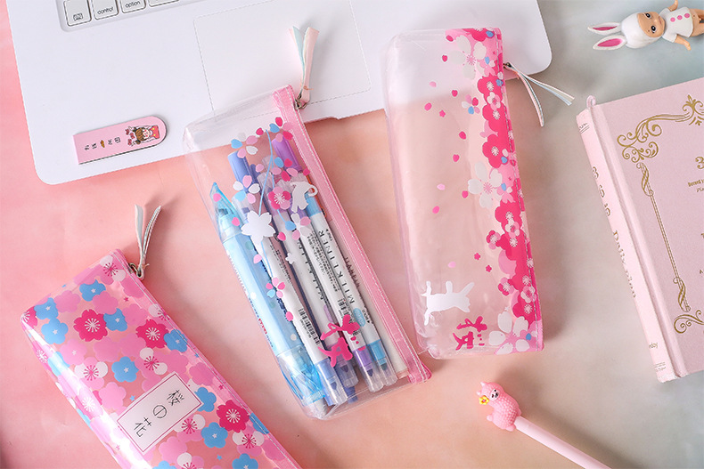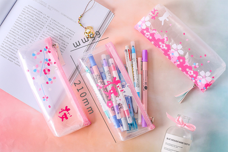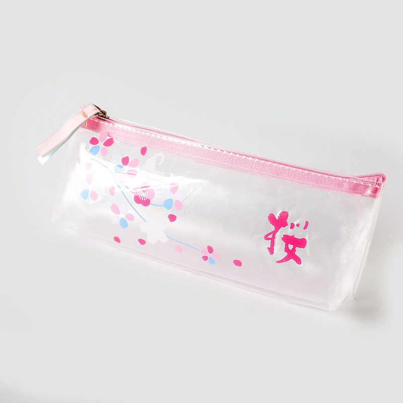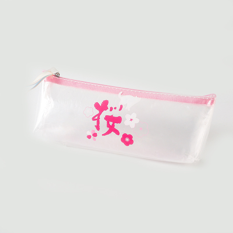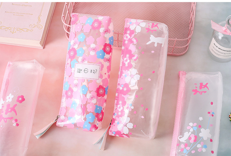 Details:Japanese Pink Cherry Blossom Flowers White Cat Clear Pencil Case Cosmetic Bag