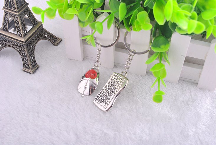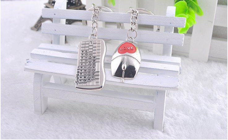 Keyboard Mouse Love Heart Silver Metal Couple Keyrings Lovers Puzzle Key Chains