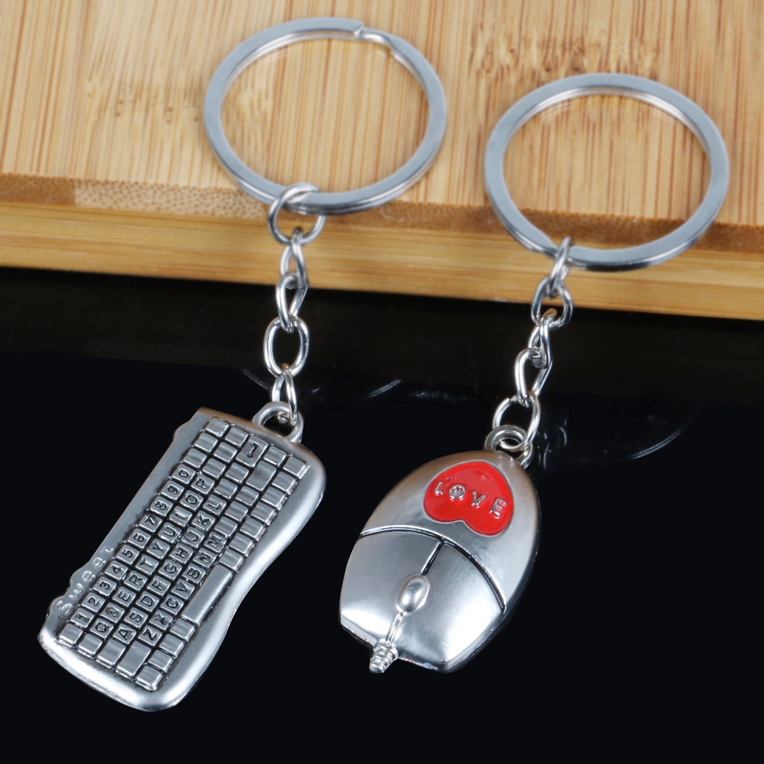 Package includes 1 pair of keyrings