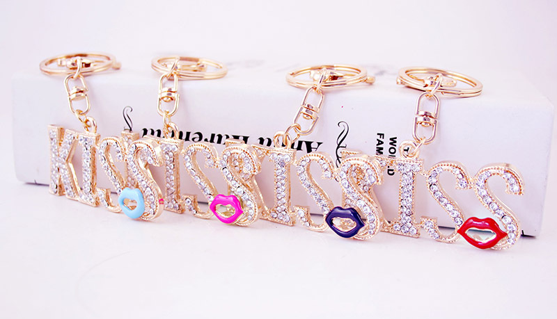 KISS Red Lips Crystal Diamante Bag Charms Handbag Keyrings Pendant Key Chain