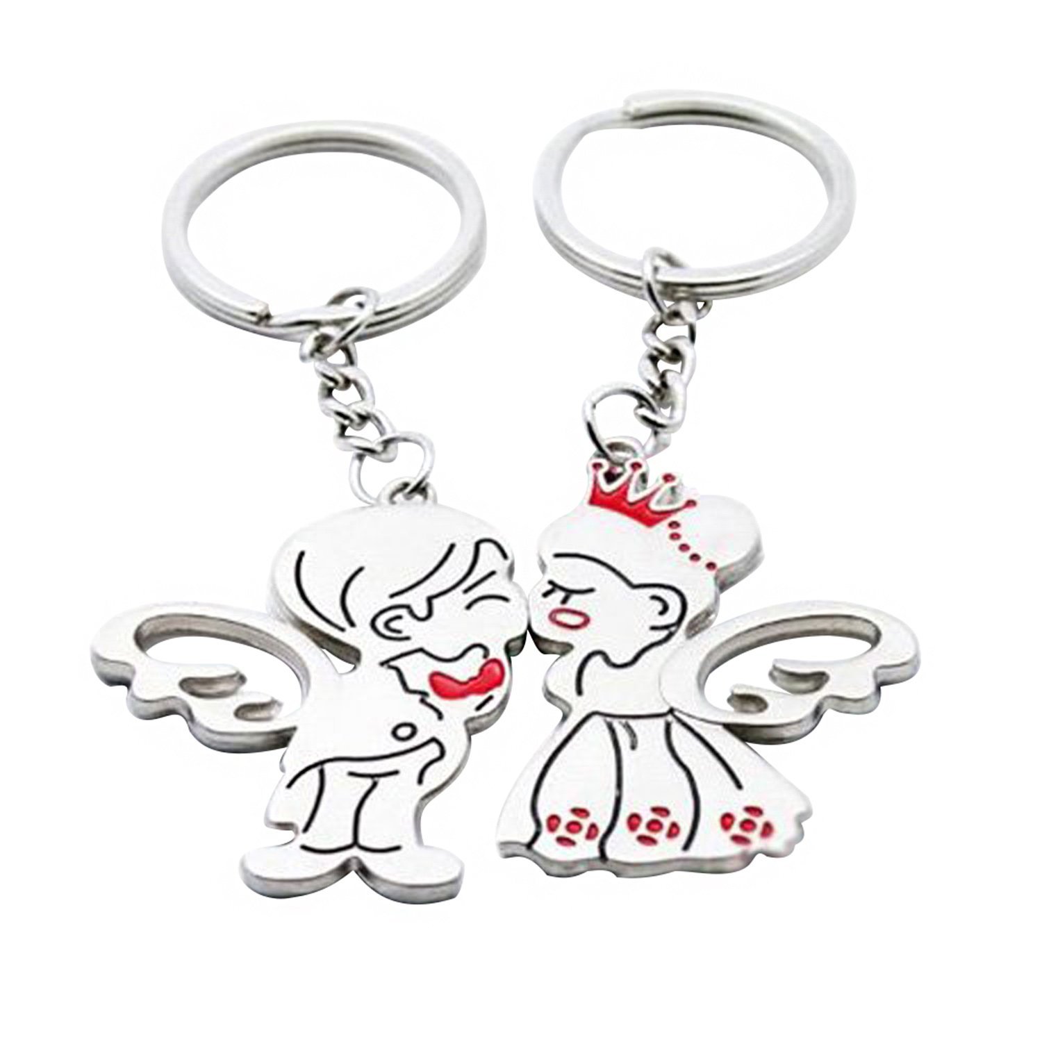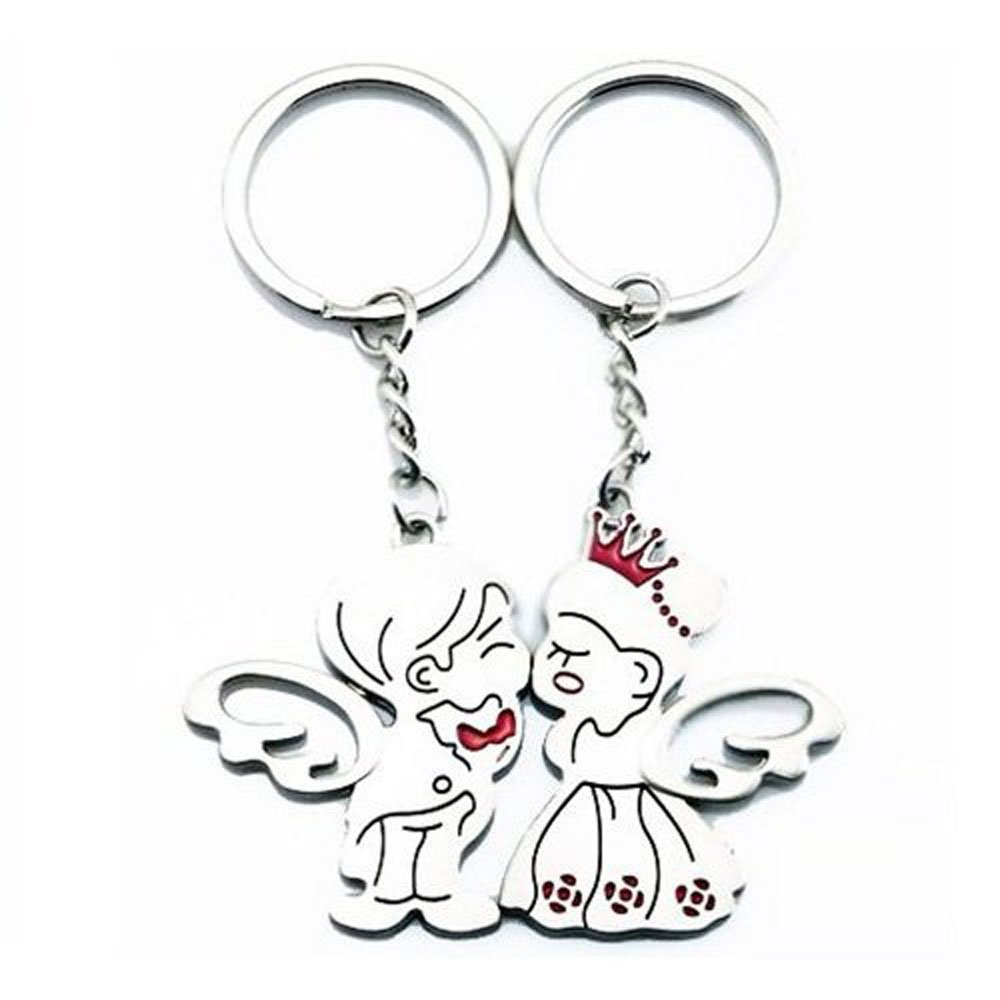 Details:Kissing Prince Princess Silver Metal Couple Keyrings Lovers Puzzle Key Chains
