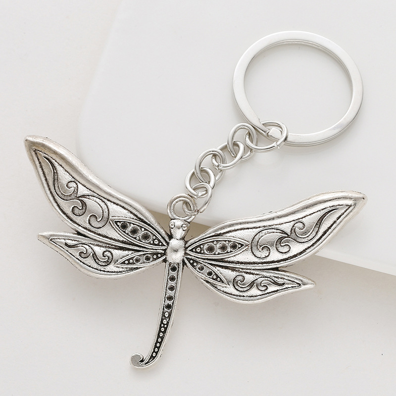 Details:Large Antiqued Silver Dragonfly Keyring Nature Animal Insect Lovers Gift