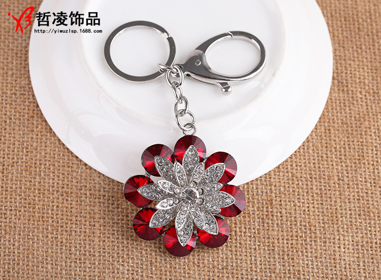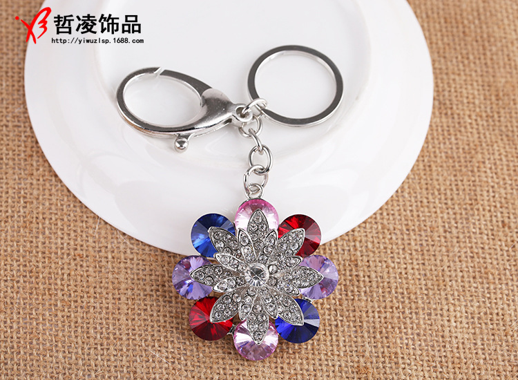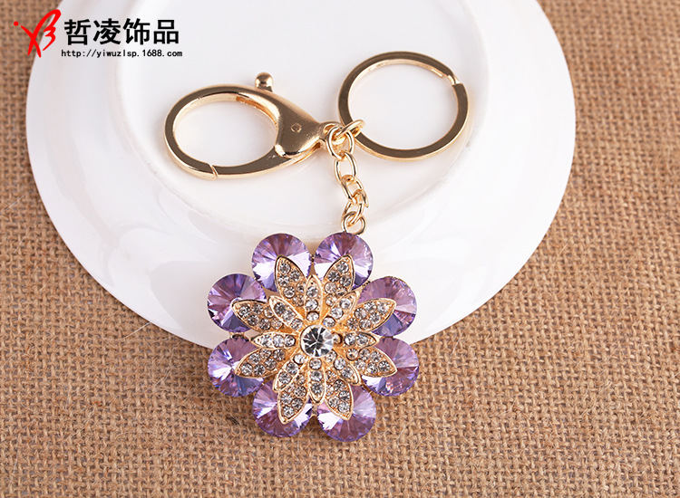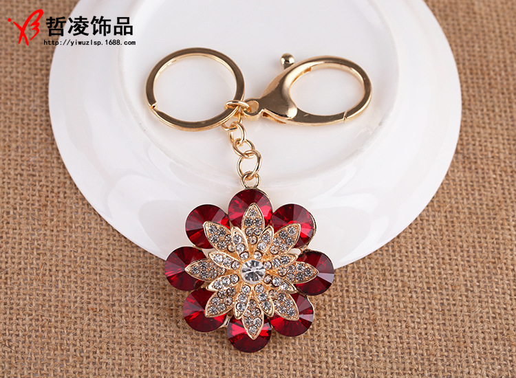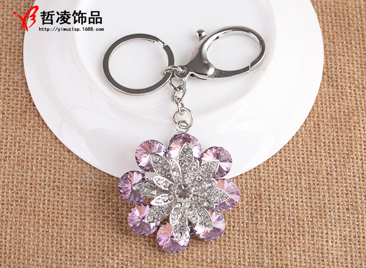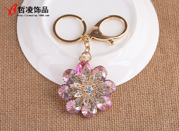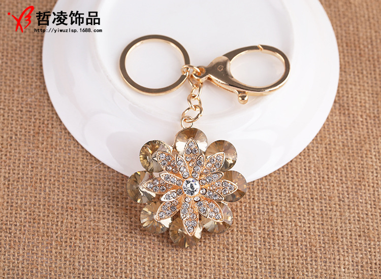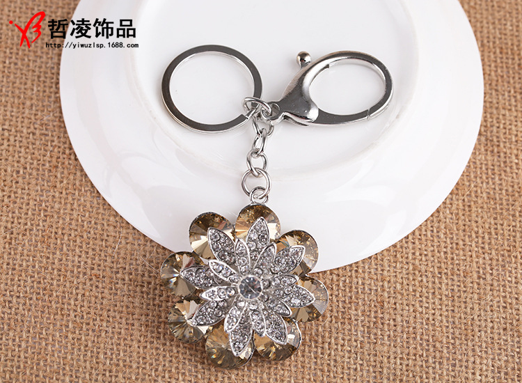 Large Daisy Flower Crystal Diamante Rhinestone Bag Charms Floral Handbag Keyrings Pendant Key Chain