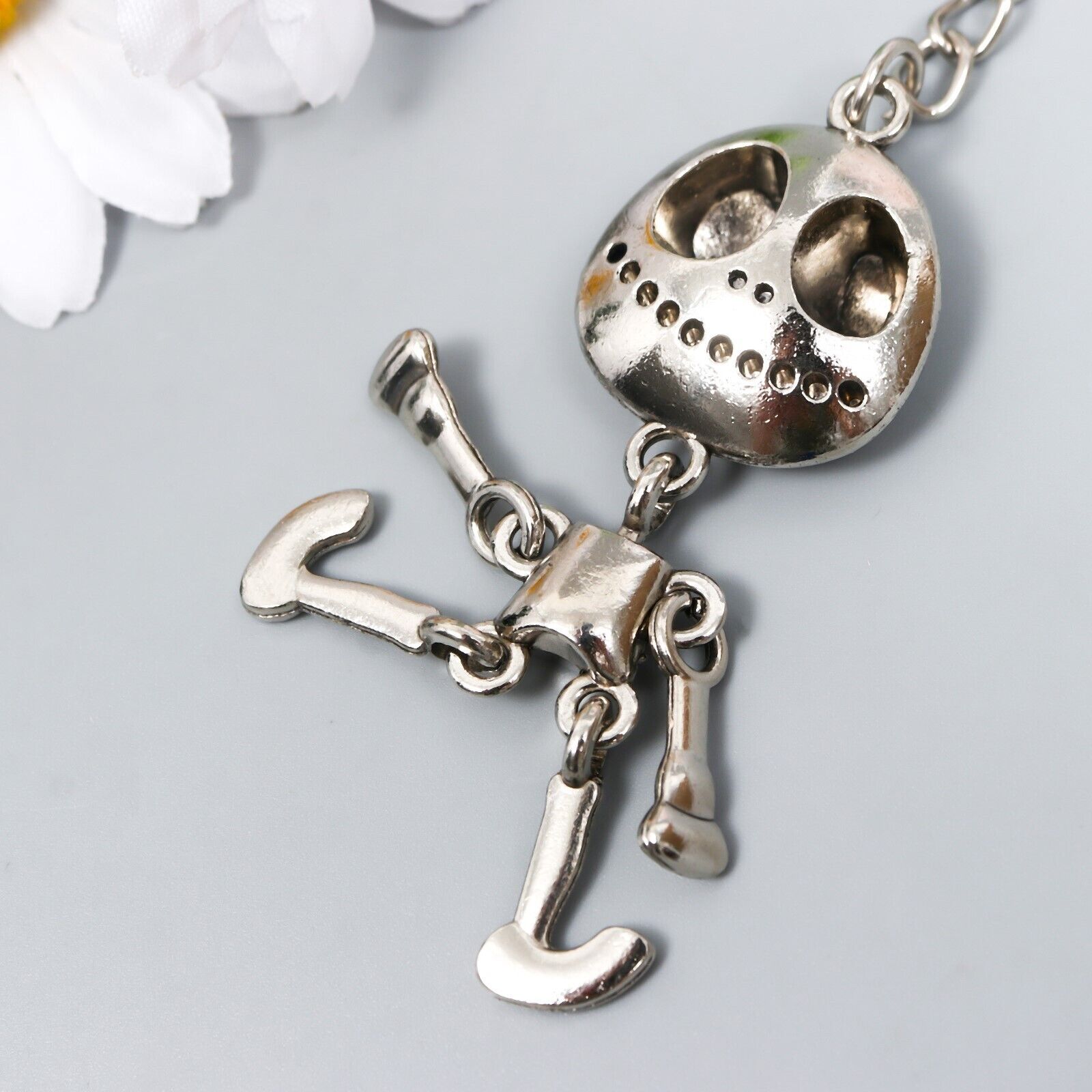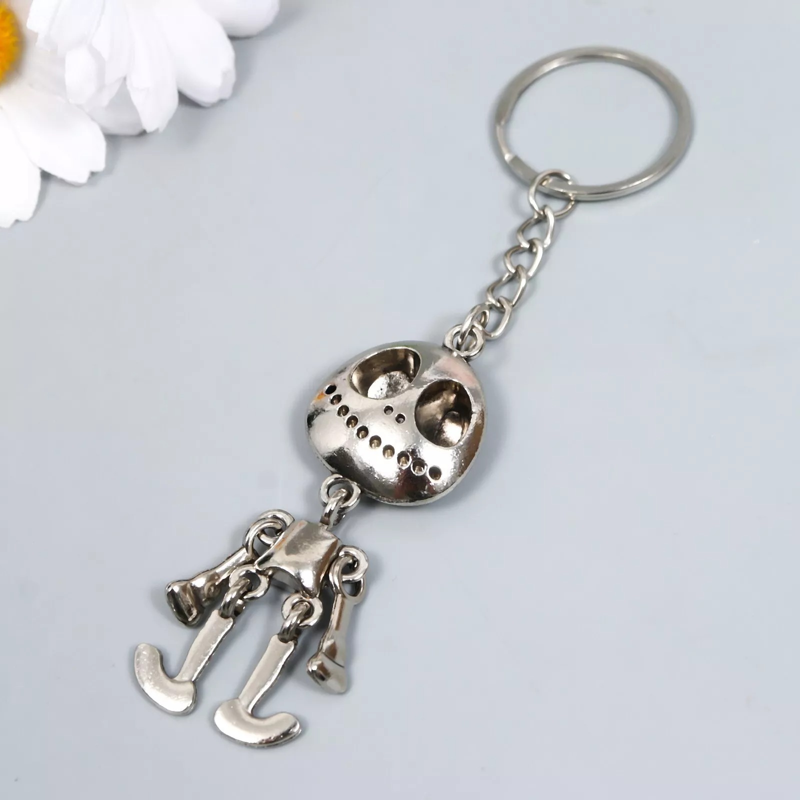 Details:Large Skeleton Skull Retro Style Silver Metal Keyring Cool Halloween Gift