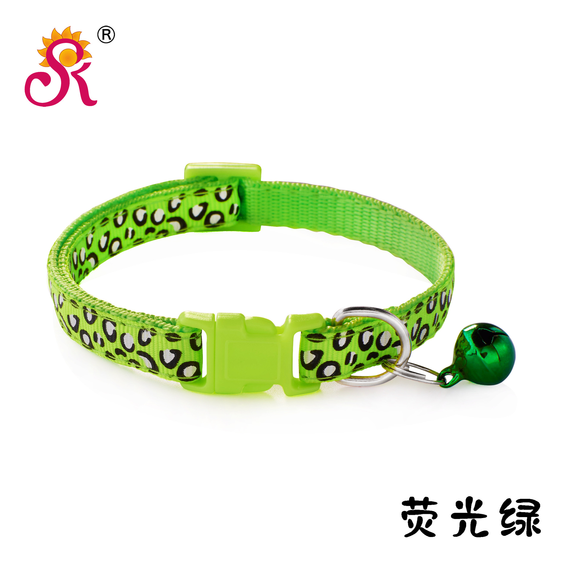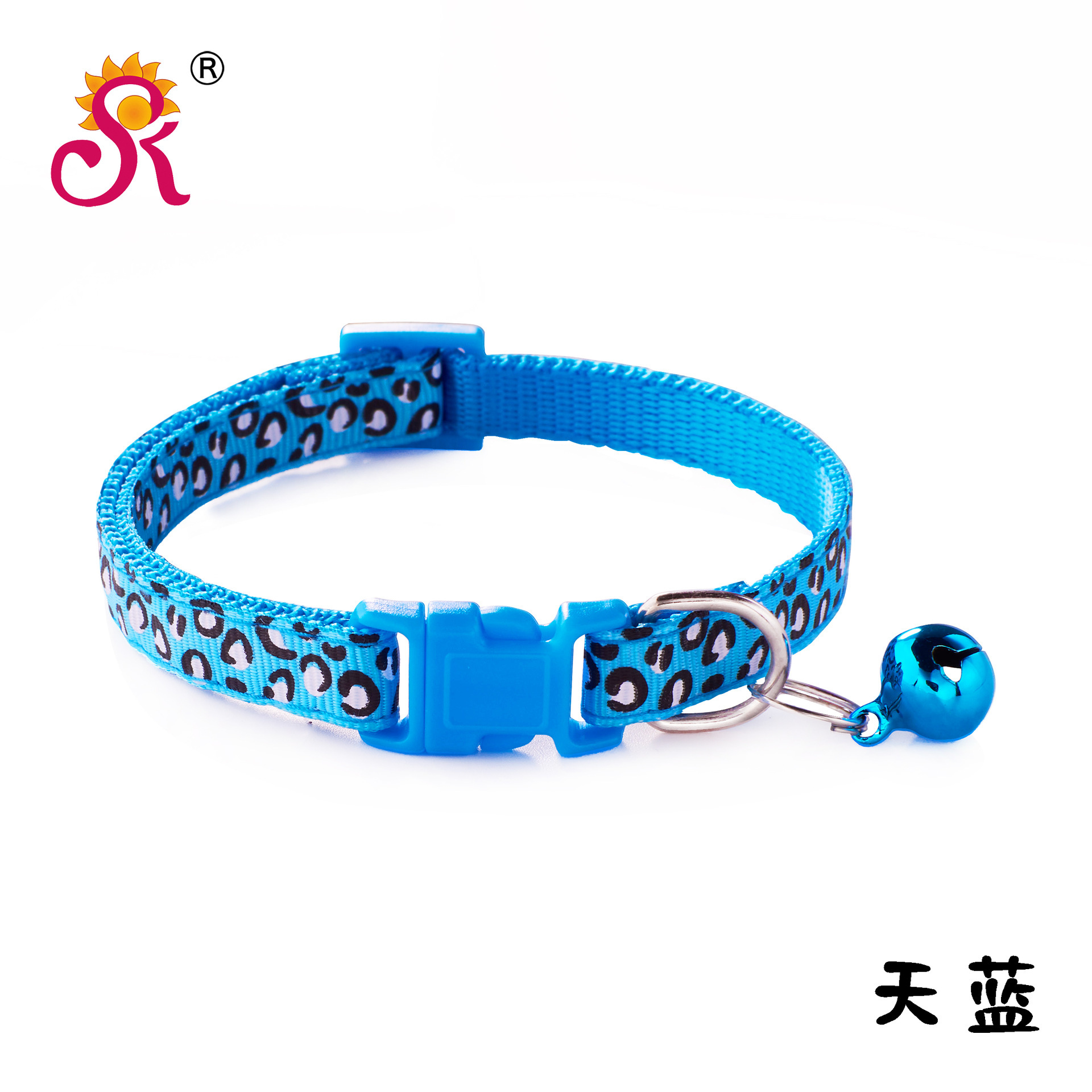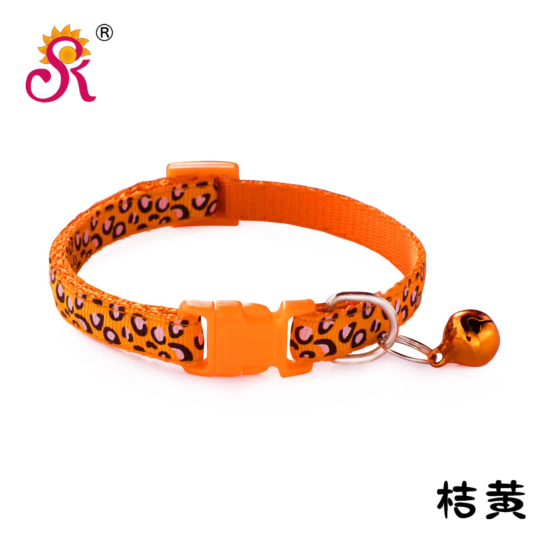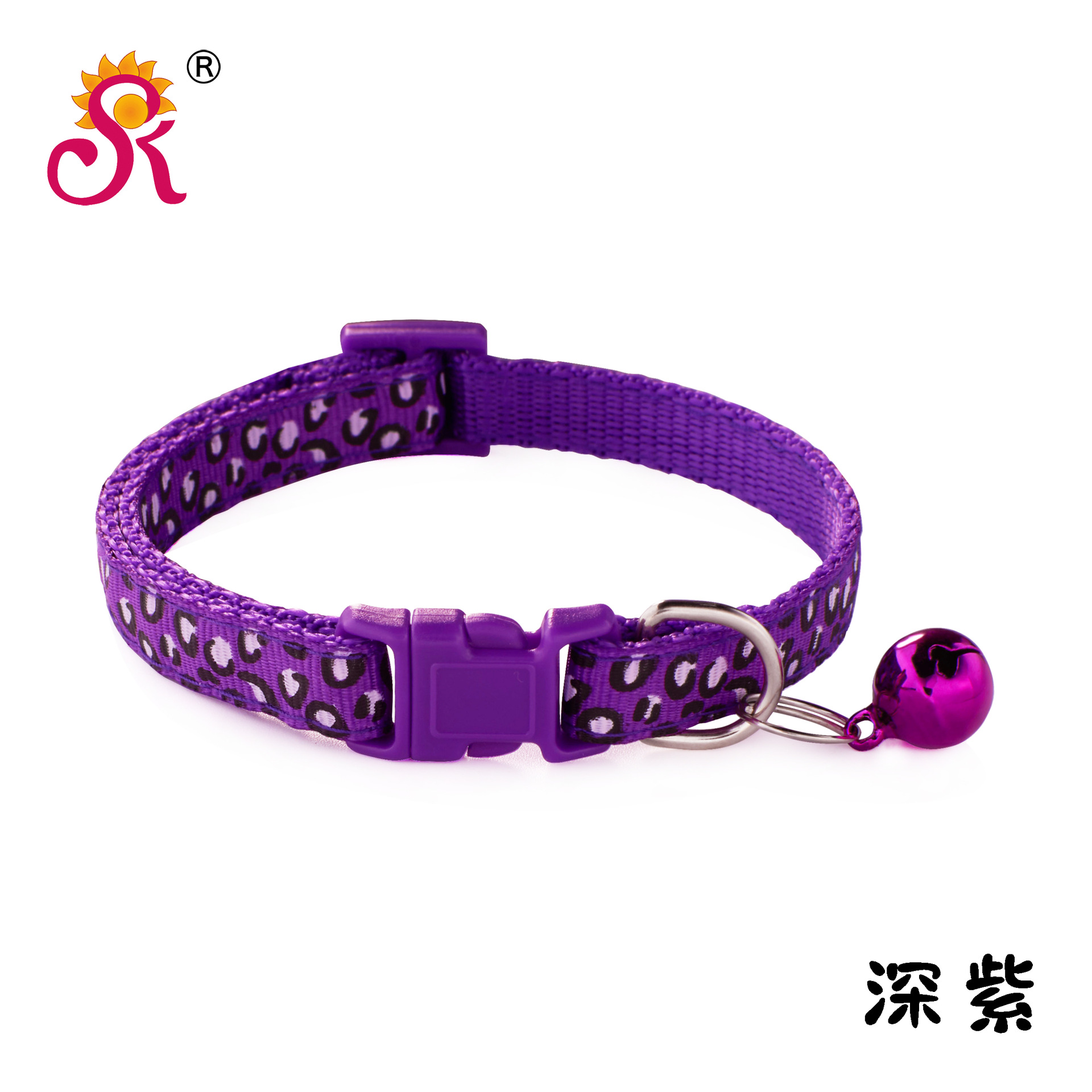 Leopard Skin Patterned Adjustable Kitten Cat Collar With Bell And Snap Buckle