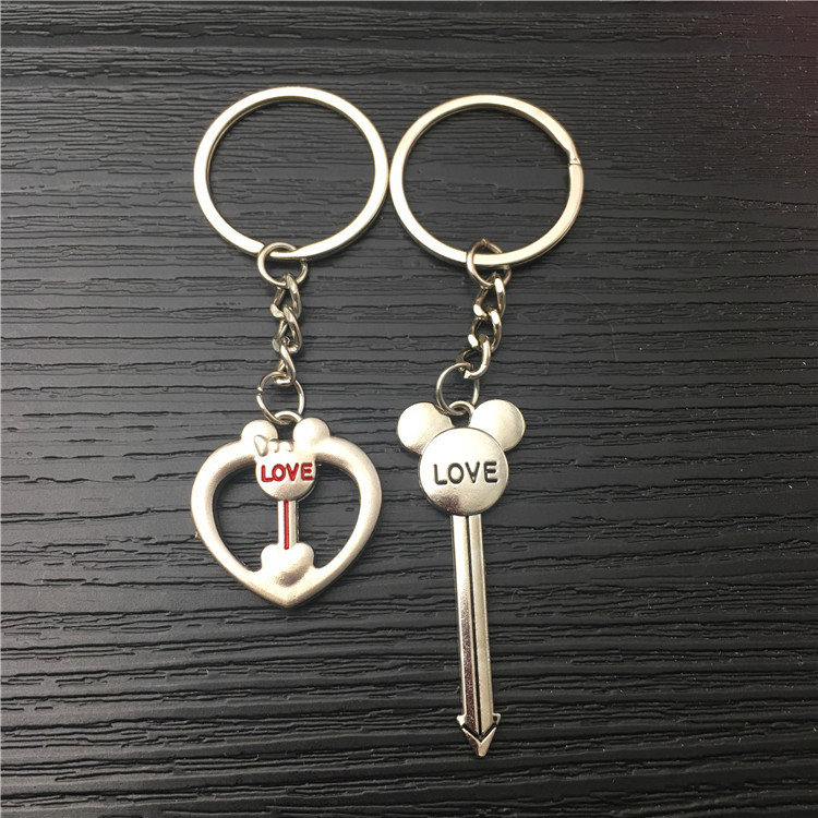 Details:Love Heart Cupid Arrow Silver Couple Keyrings Lovers Puzzle Metal Keyring Set