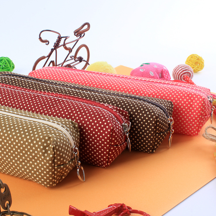 Lovely Dotted Pattern Canvas Pencil Case