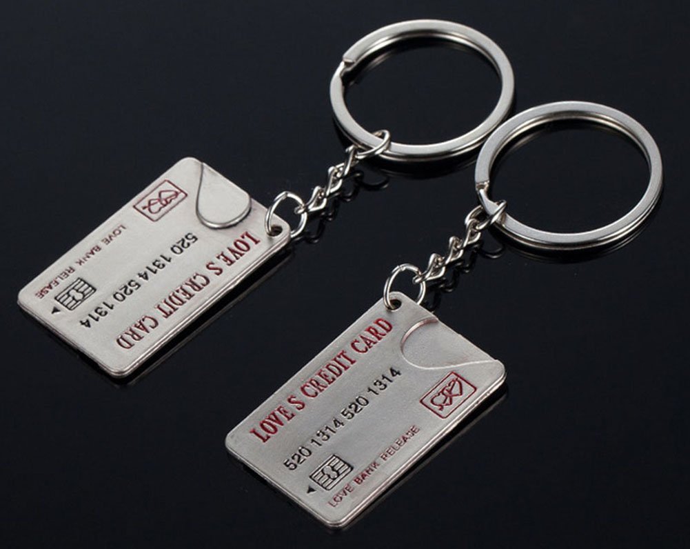 Lovers Credit Card Couple Keyrings Set Silver Metal Puzzle Keyrings Key Chains