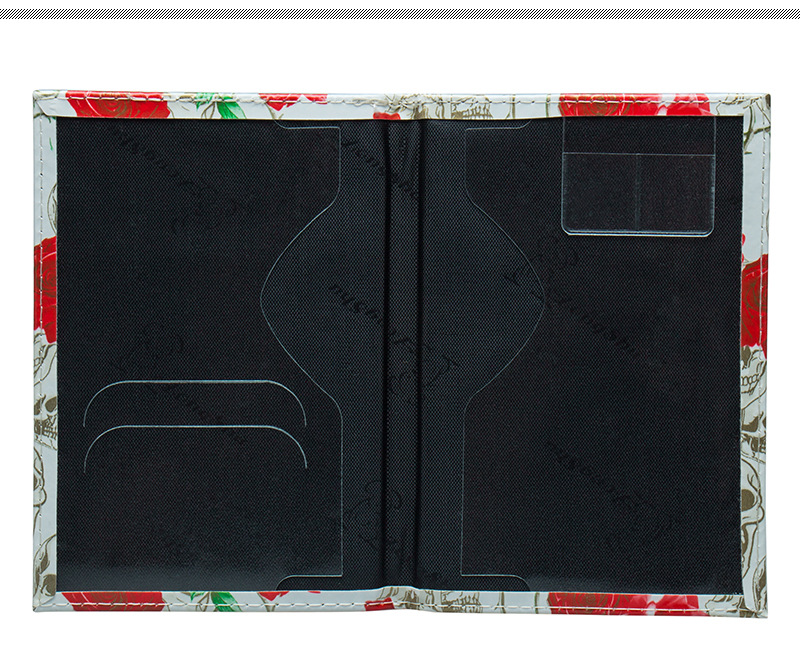 Luxury Skeleton Skulls and Rose Flowers Patterned PU leather passport cover available in different colours.