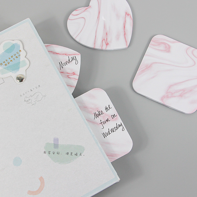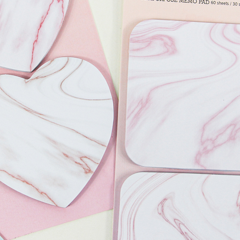 Marble Pattern Heart Arrow Square Round Shape Cute Novelty Sticky Notes Pad