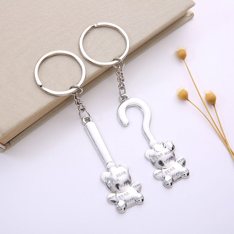 Mr and Mrs Bear Silver Couple Keyrings Lovers Puzzle Metal Keyring Set A Pair