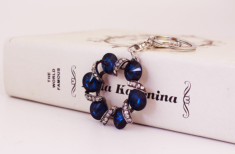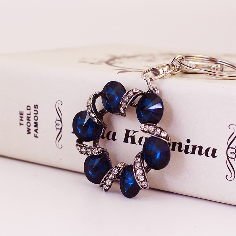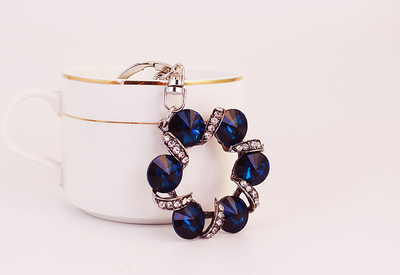 Navy Blue Flower Crystal Diamante Rhinestone Bag Charms Handbag Keyring Pendant