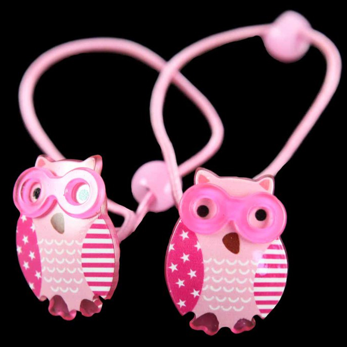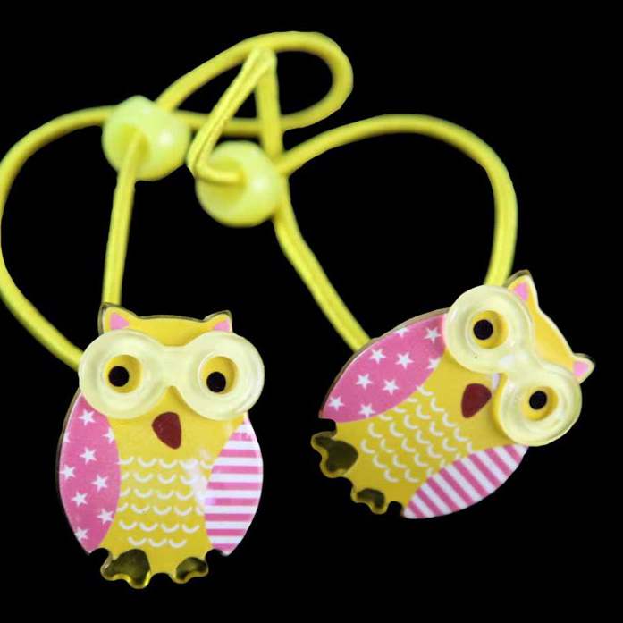 Hair elastics with a plastic owl.