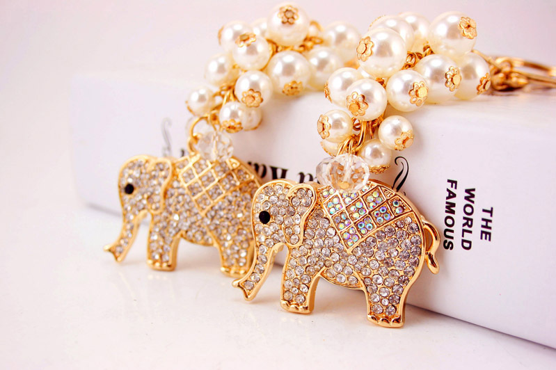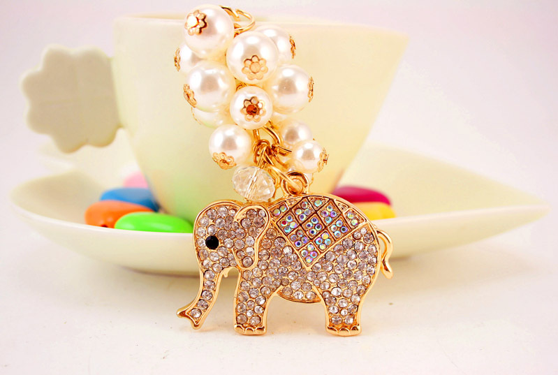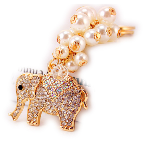 Details:Pearl Elephant Animal Shaped Diamante Rhinestone Bag Charms Handbag Keyrings Pendant Key Chain