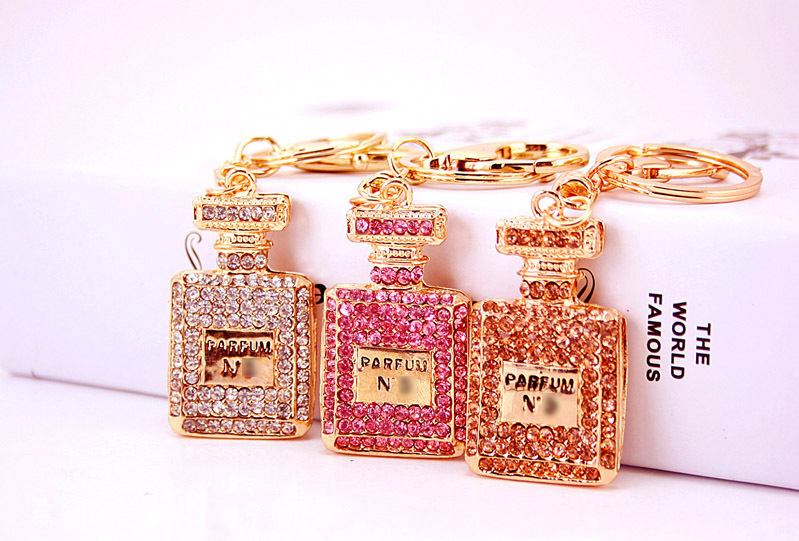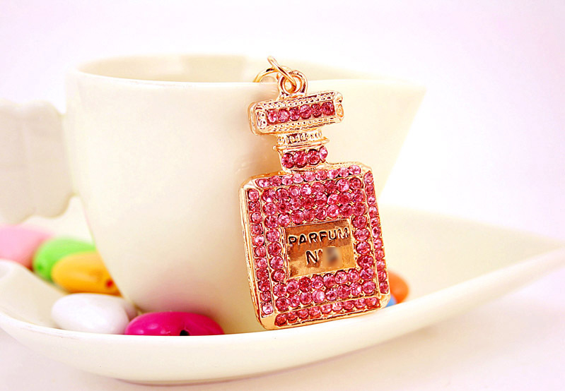 Perfume Bottle Crystal Diamante Rhinestone Bag Charms Handbag Keyrings Pendant Key Chain