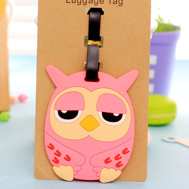 Pink Blue Owl Birds Fashion Luggage Tags Cute Holiday Suitcase Labels Travel Bag Identity ID