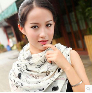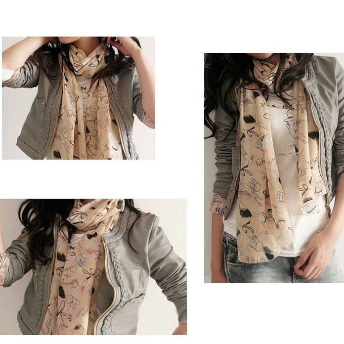 Details:Pink Lipsticks High Heel Shoes Patterned Fashion Womens Scarves Chiffon Scarf