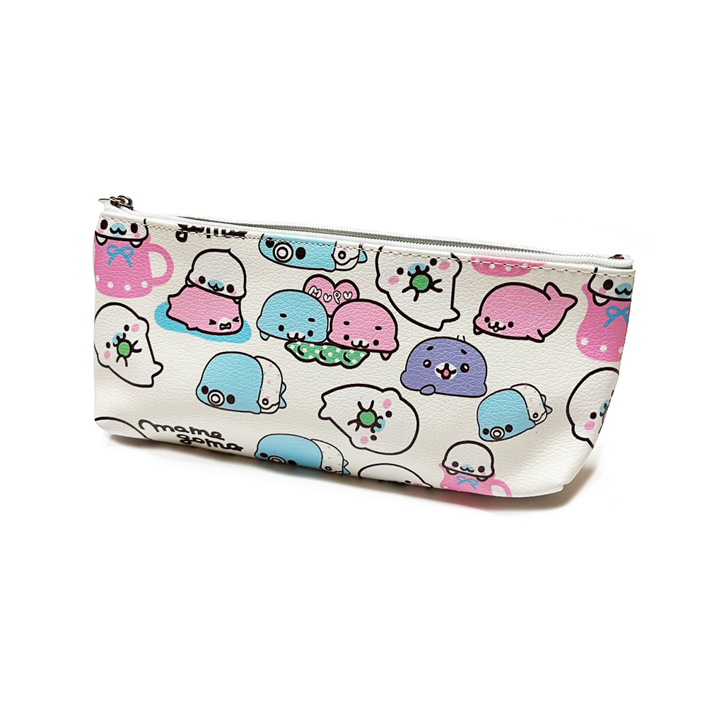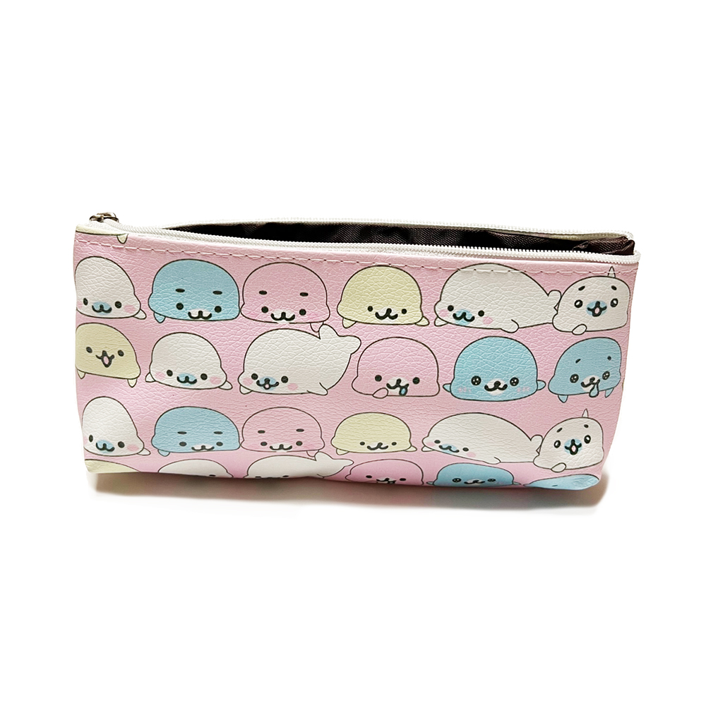 Pink Seals And Animal Friends Patterned Leather Pencil Case Cosmetic Makeup Bags
