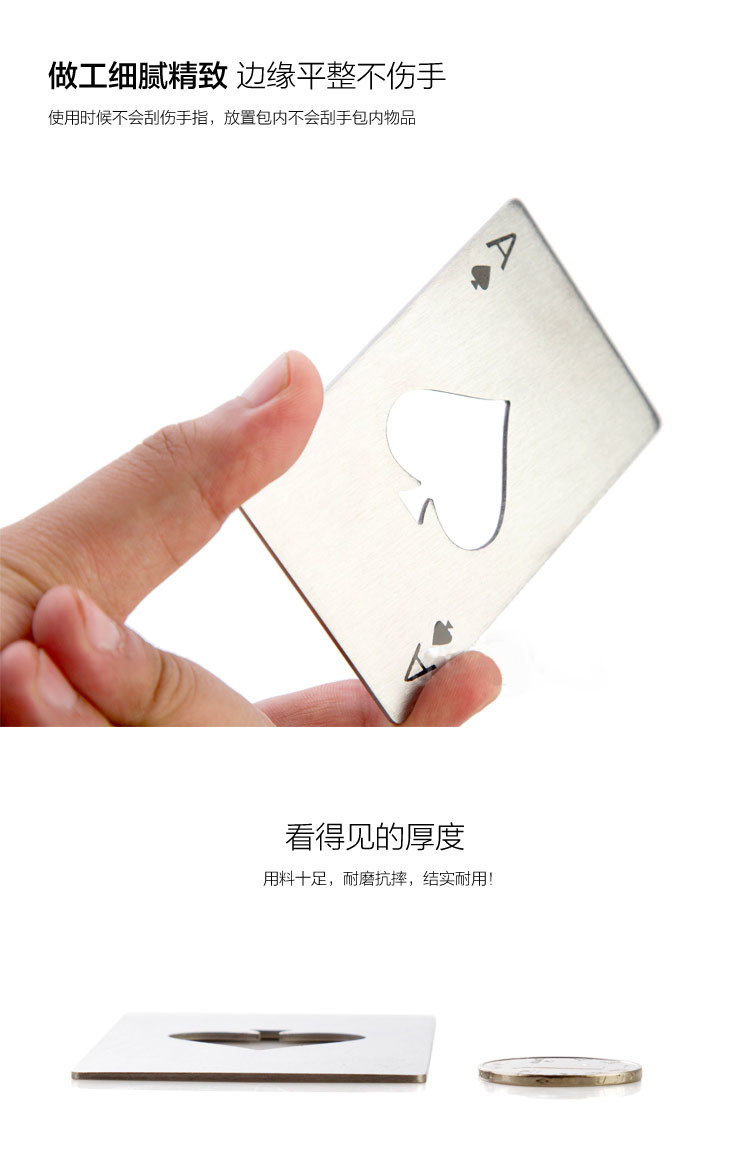 Poker Playing Card Ace of Spades Stainless Steel Metal Bottle Opener