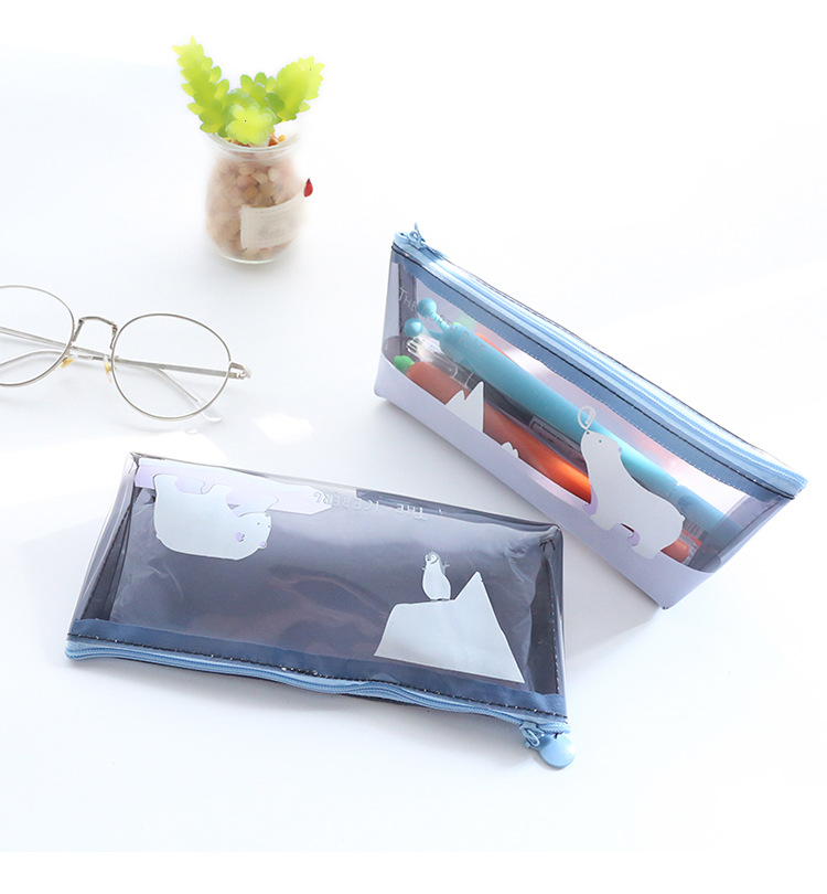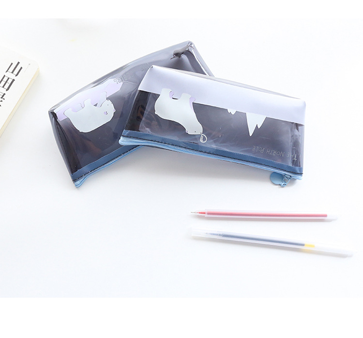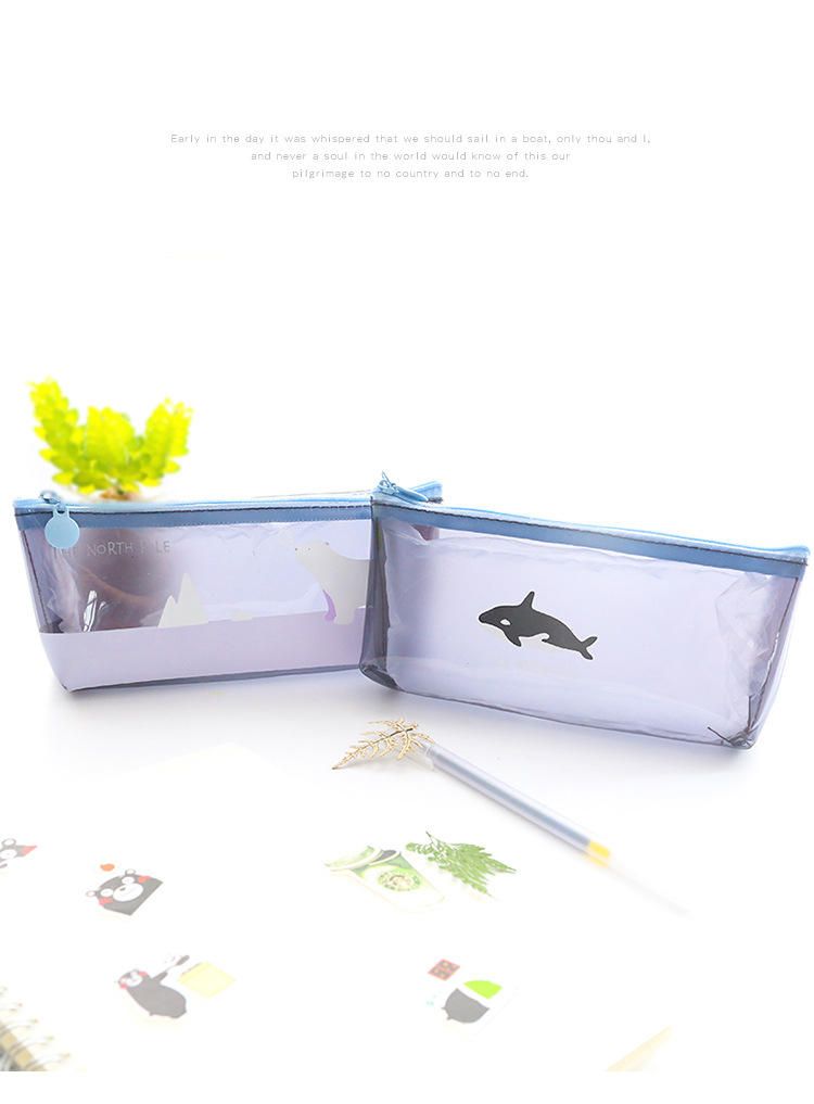 Polar Animals Bear Penguins Whale Iceberg Plastic Pencil Cases Cosmetics Make Up Bags Pen Pouches