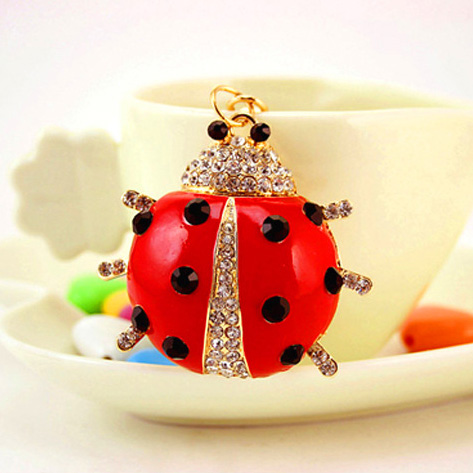 A very attractive design in ladybird with sparkling crystal diamante rhinestones. This bag charm / handbag keyring is a very unique gift for your loved one on special occasions.