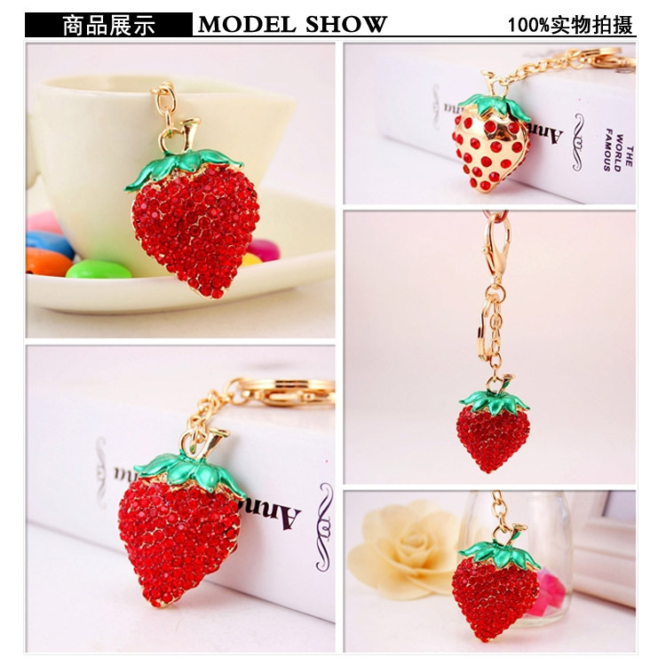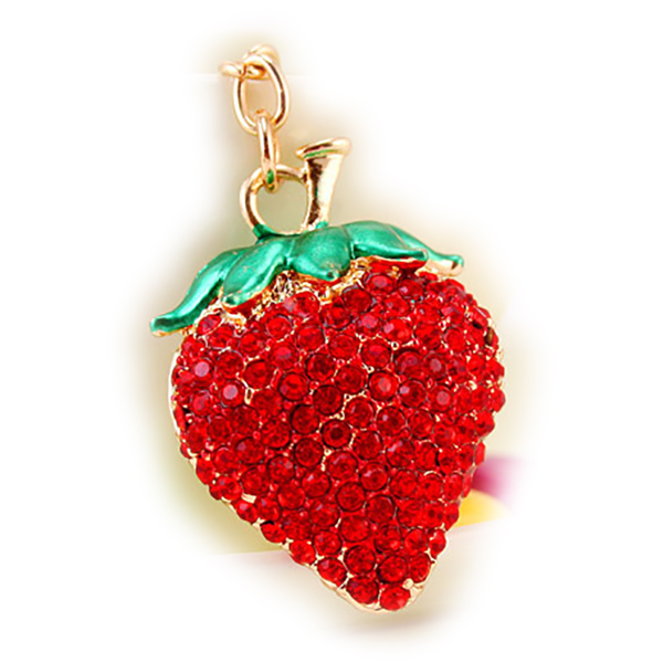 Red Strawberry Fruit Food Crystal Diamante Bag Charms Handbag Keyring Pendant