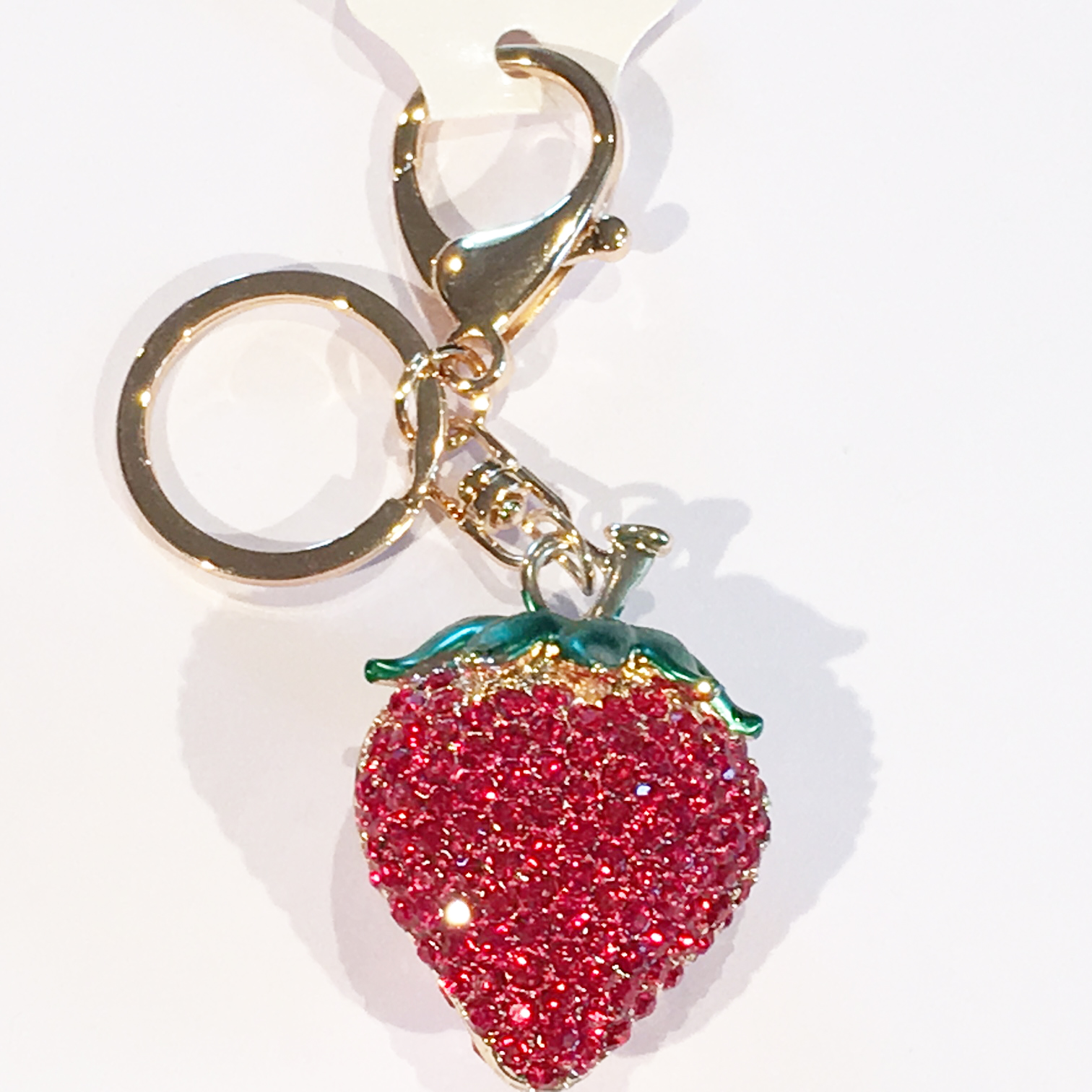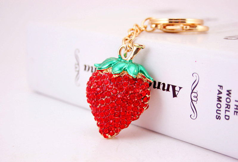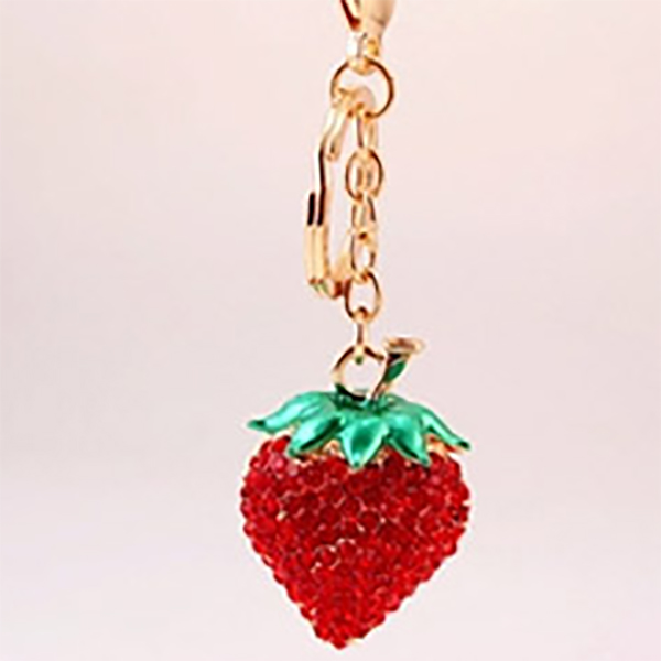 A very attractive design in strawberry with sparkling crystal diamante rhinestones. This bag charm / handbag keyring is a very unique gift for your loved one on special occasions.