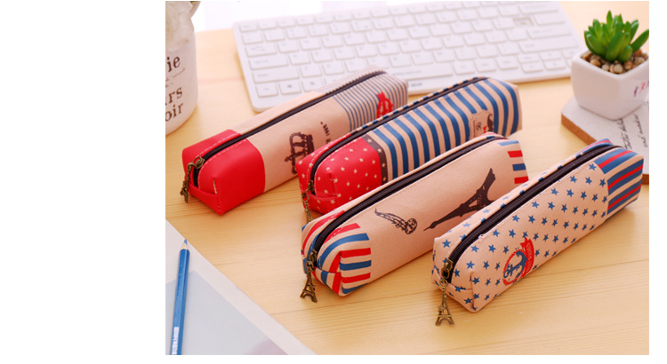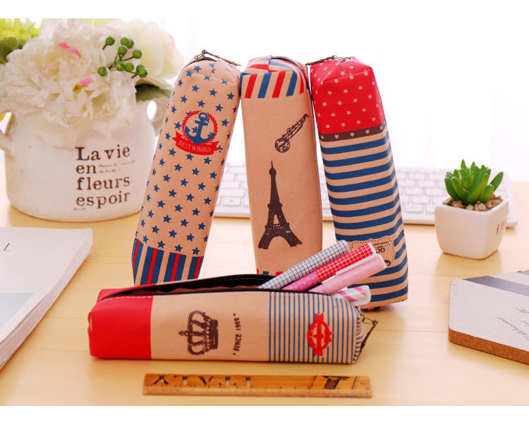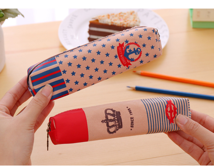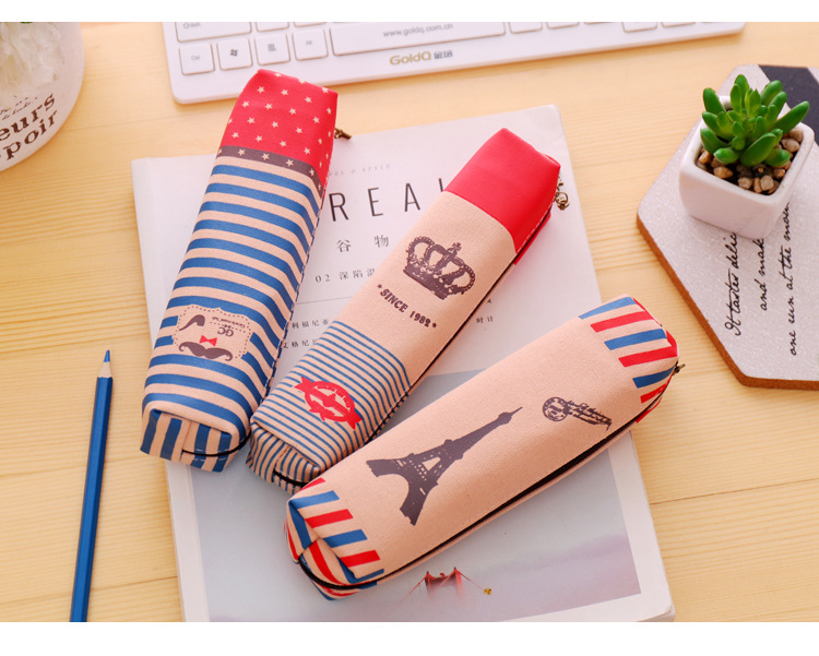 Retro Vintage Style America Flag Patterned Cute Canvas Pencil Cases Pen Pouches