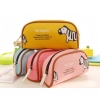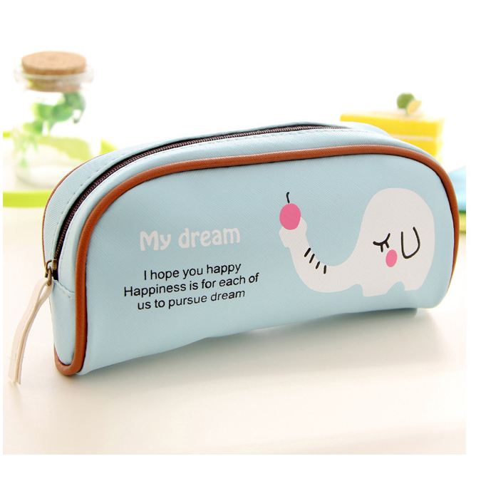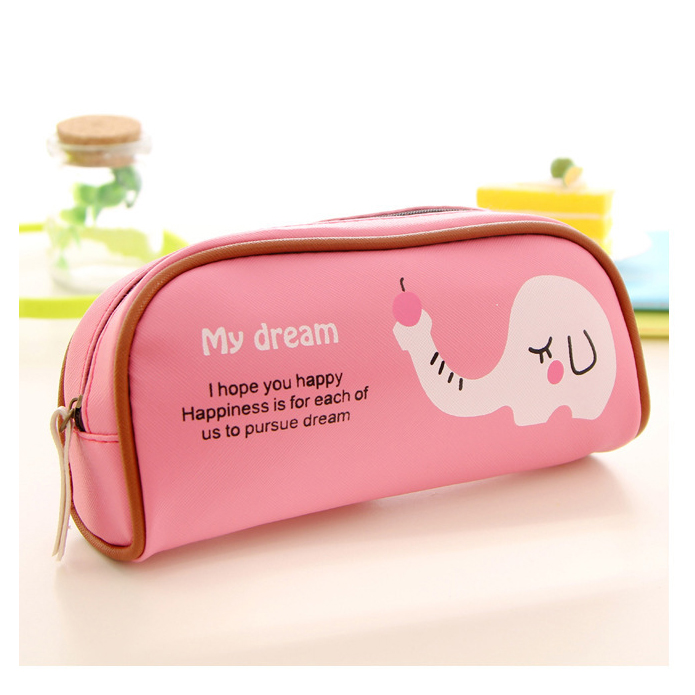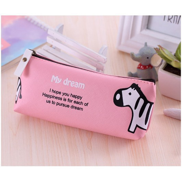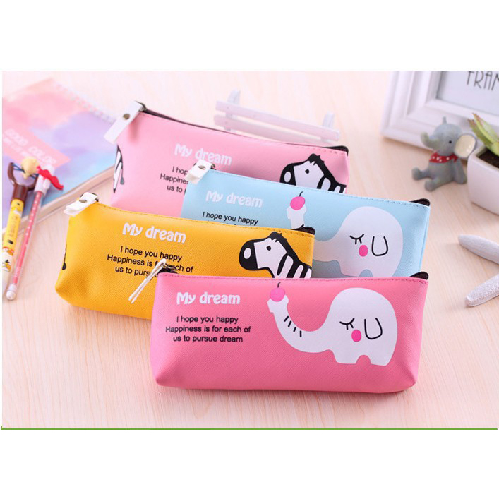 Safari Animals Elephant Zebra Cute Girls Soft PU Leather Pencil Case Makeup Bag