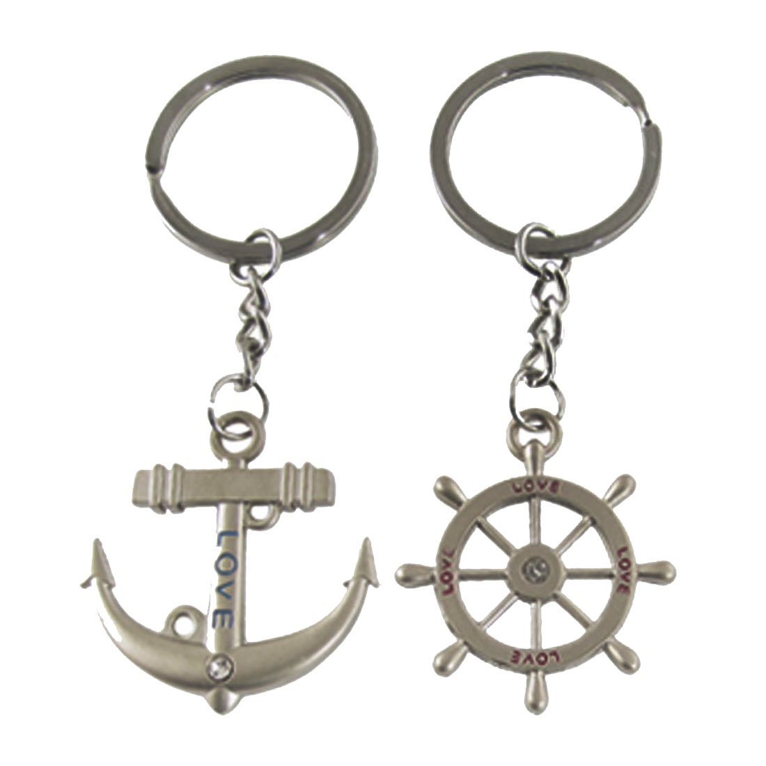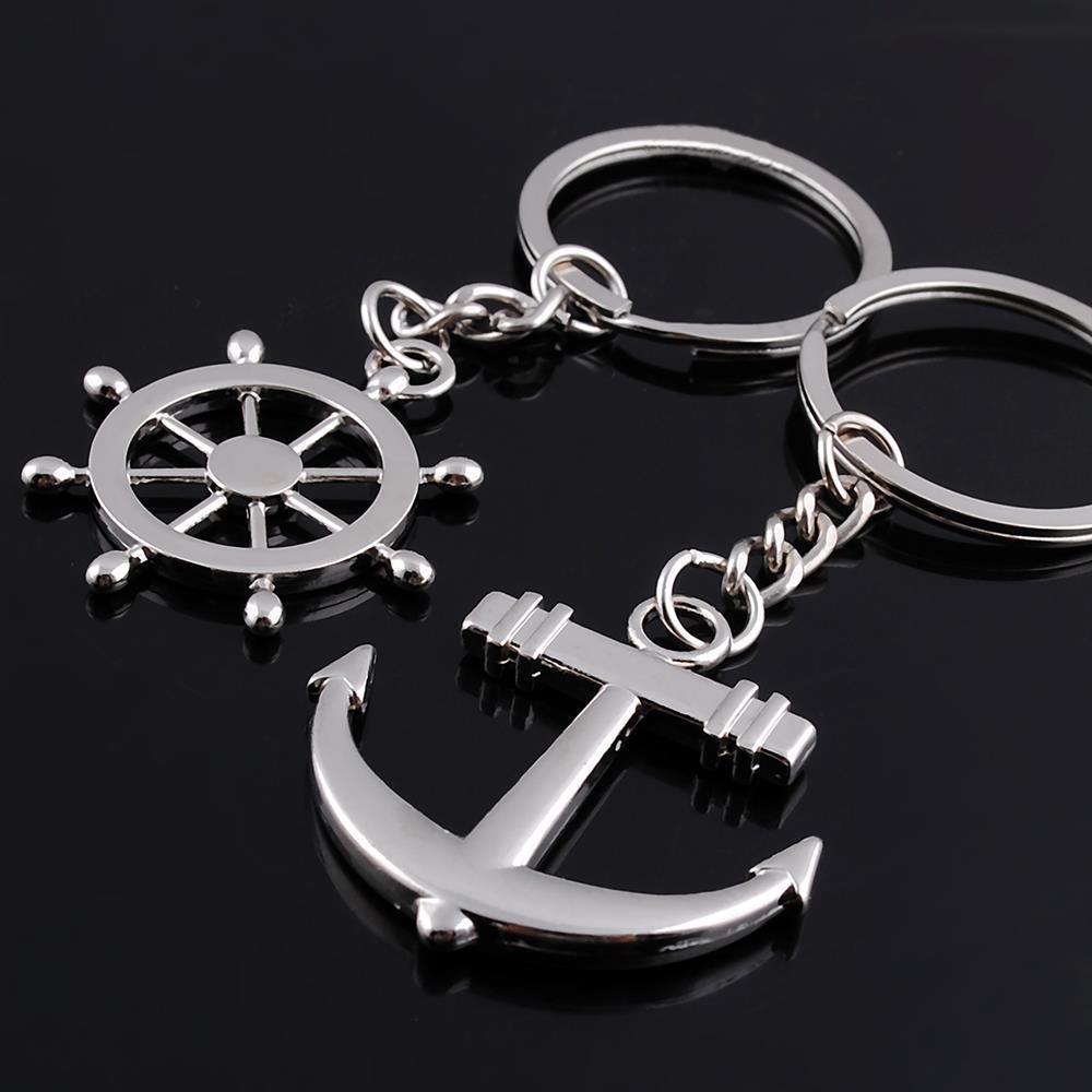 Sailors Anchor Steering Wheel Silver Metal Couple Keyrings Set Lovers Key Chains