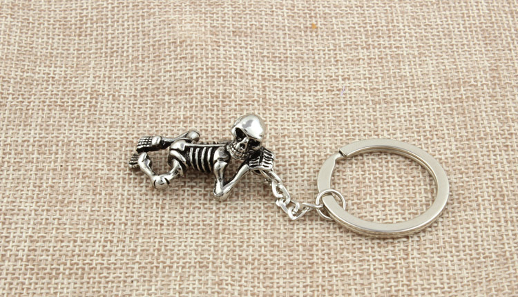 Details:Skeleton Skull Silver Keyrings Novelty Metal Key Chains For Men And Boys