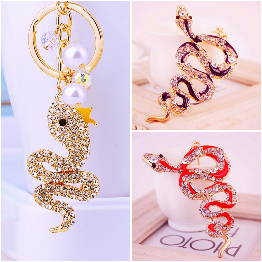 Snake Animals Crystal Diamante Bag Charms Handbag Women Keyrings Pendant