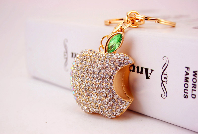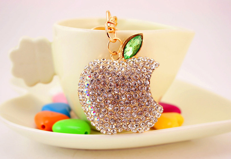 Details:Sparkling Crystal Diamante Rhinestone Apple Fruit Shape Bag Charms Handbag Pendant Keyring Key Chain