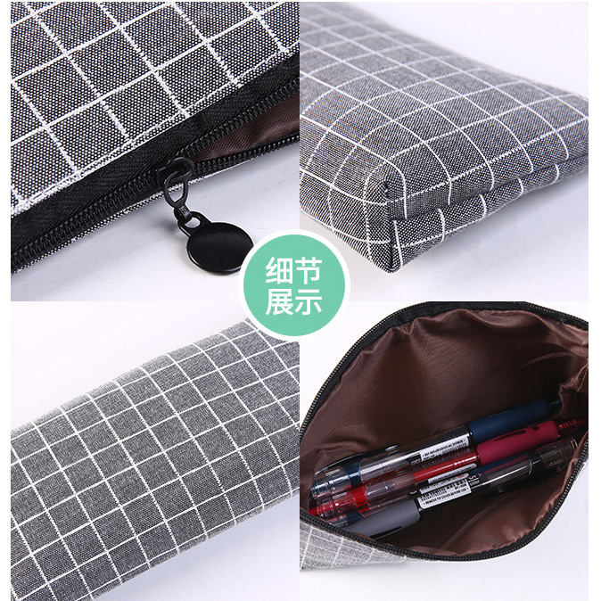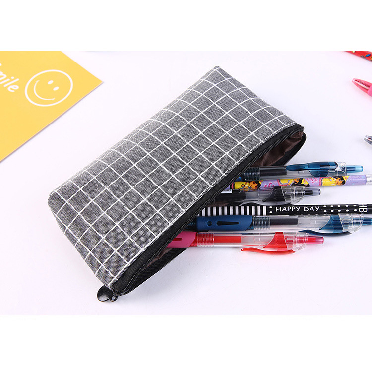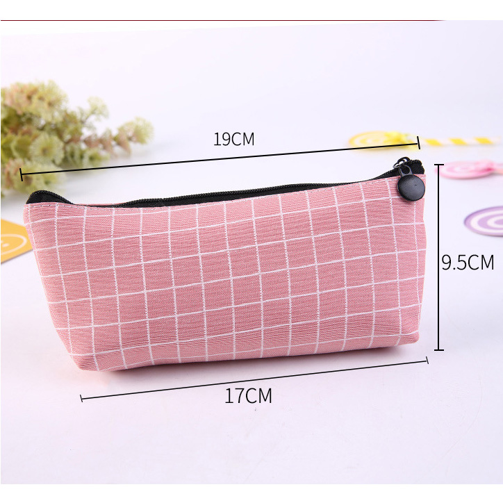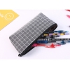Square Lattice Grid Patterned Canvas Pencil Case Fashion Cosmetic Makeup Bags