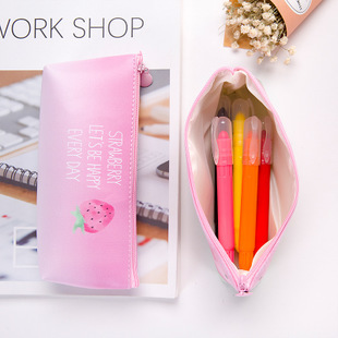 Strawberry Leather Cute Pencil Cases For Girls / Cool Pencil Cases For Boys / Cosmetics Make Up Bags