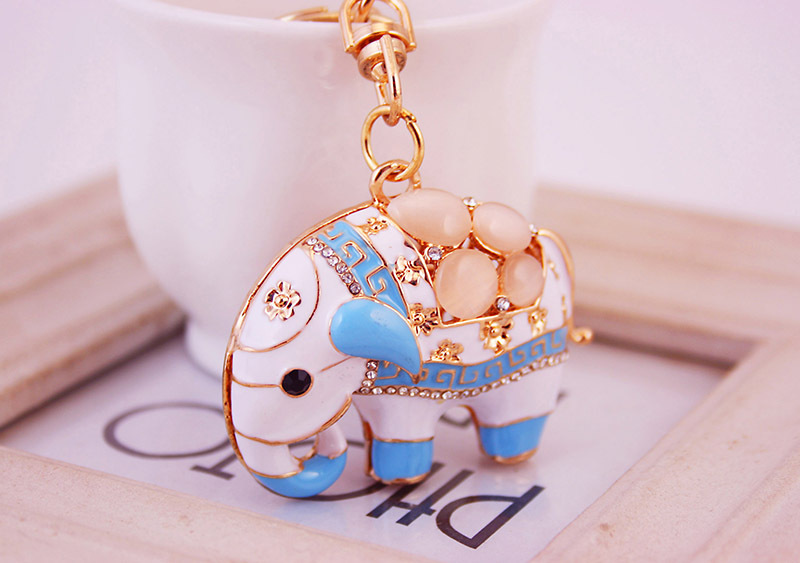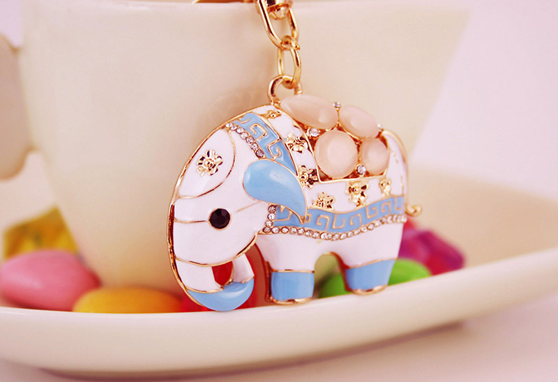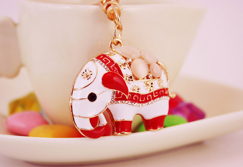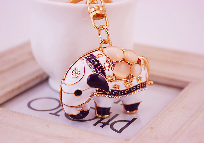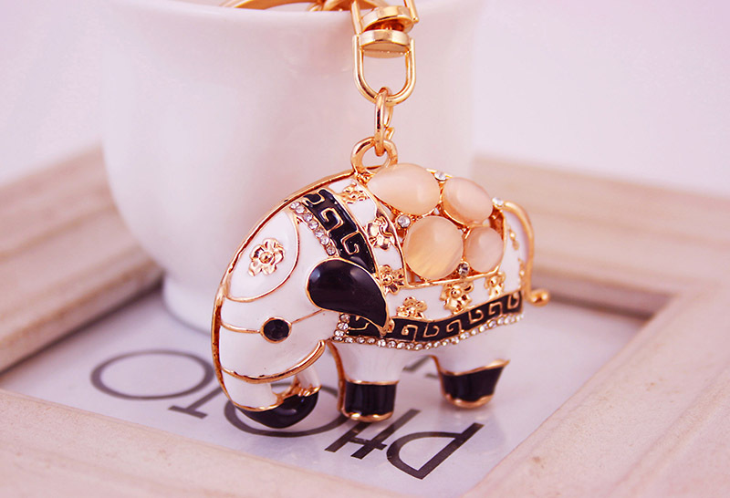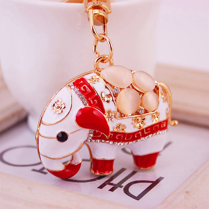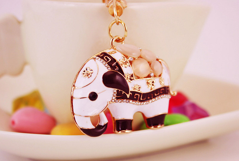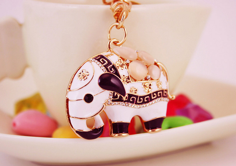 White Elephant Indian Style Crystal Diamante Bag Charms Handbag Keyrings Pendant