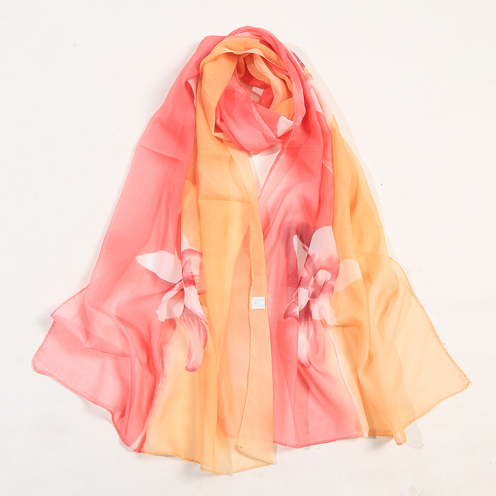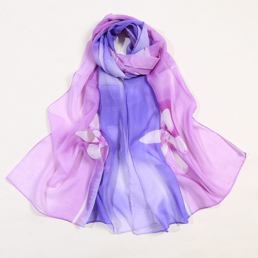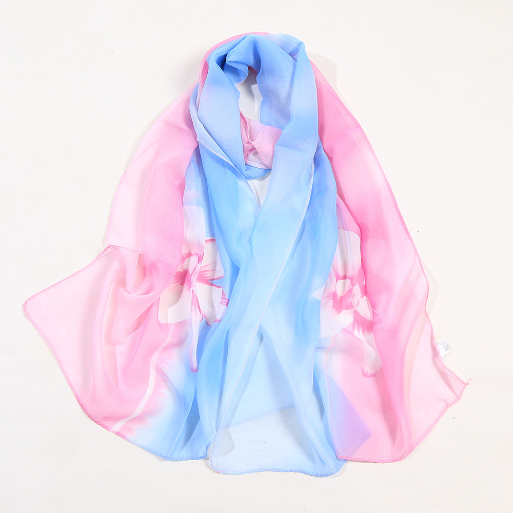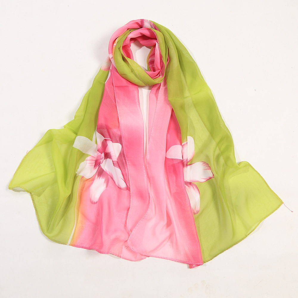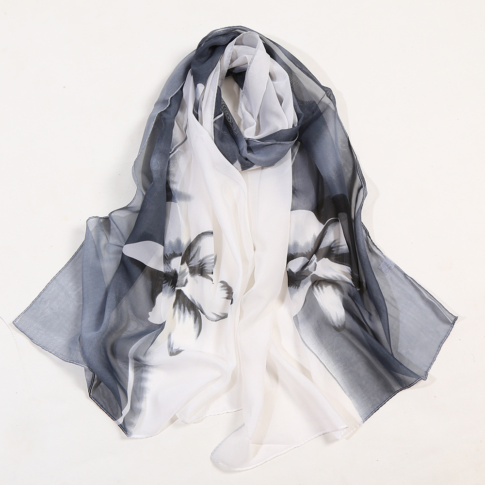 White Lily Flowers Fashion Floral Ladies Scarves Chiffon Scarf Womens Shawl N379