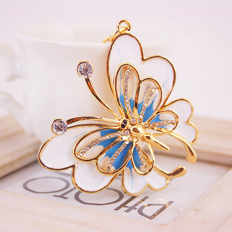 Details:White Pink Blue Butterfly Crystal Diamante Bag Charms Handbag Keyrings Pendant